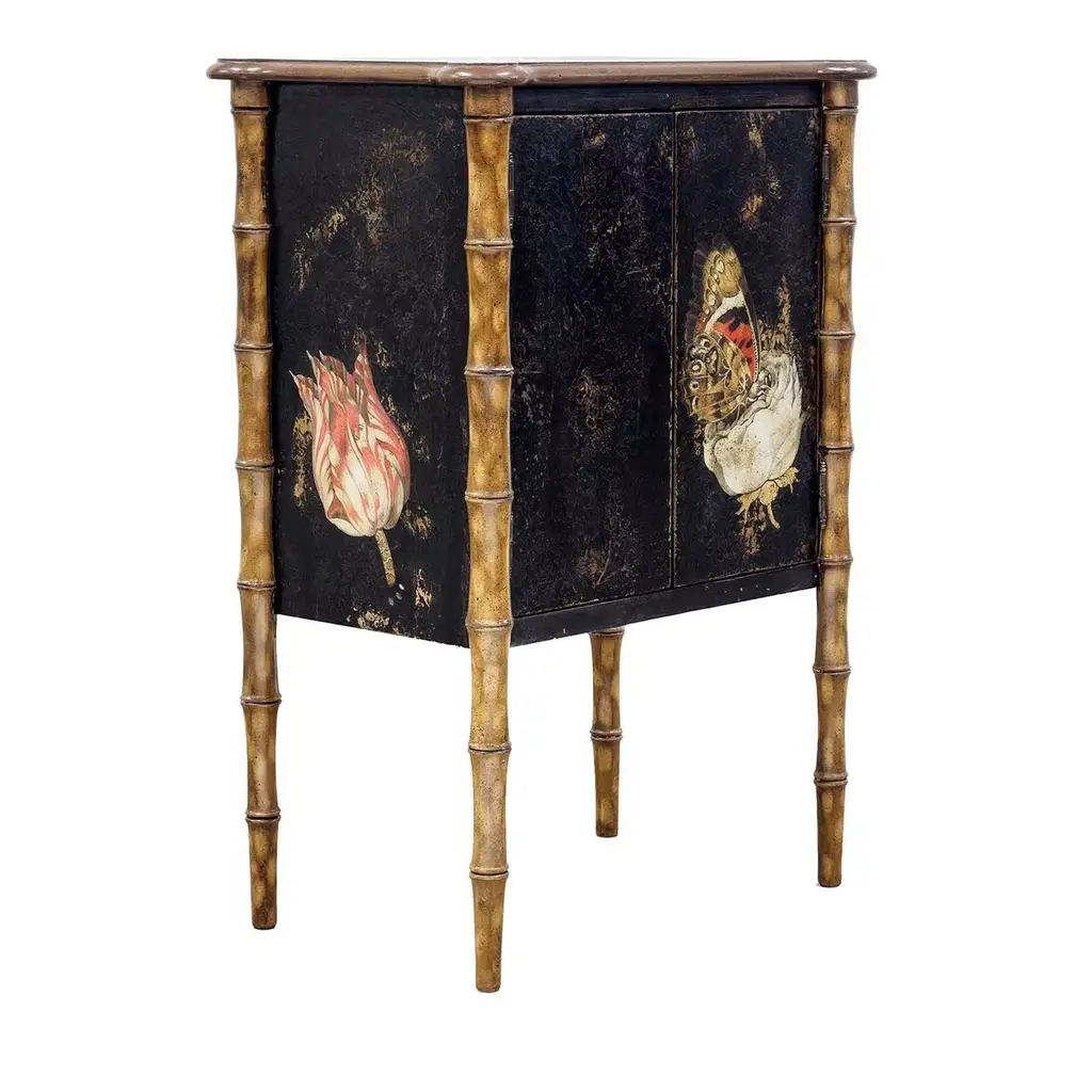 The elegant Venetian style characterizes the Lombardy Chest of Drawers, custom-made and decorated entirely by hand. The wooden structure, shown here in black with decorations in soft shades, can be customized both in size and color, based on customer’s requests This bedside table can be combined with any style of furniture, as the product can entirely personalized.