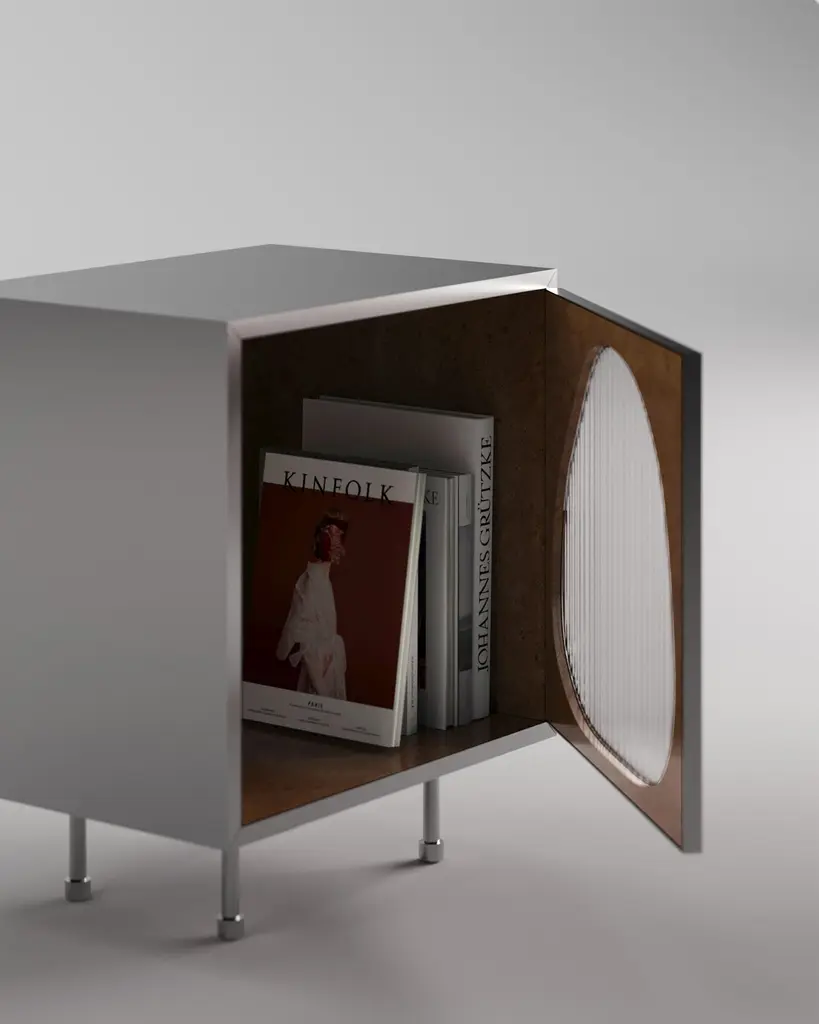Loop Side Table by Tuğçe GeyikDimensions: D 45 x W 60 x H 70 cm.Materials: Stainless steel and wood.Available in custom sizing and finishes. Please contact us.Tuğçe Geyik is an architect and designer based in Istanbul. She studied at Yildiz Technical University, Department of Architecture. She began her career by participating in interior design projects and continued to cultivate her interest in this field. She finds great joy in working across different mediums and aesthetics with an approach that is united by the same principles such as furniture and lighting design, interior design, 3D architectural visualization, interior styling, and creative direction. She handles colors, textures, and forms with a holistic approach as if creating a composition from the parts of a collage. She also blends her archive of materials and techniques from the past with forms from the future to create contemporary objects that bring awareness to inanimate beings.