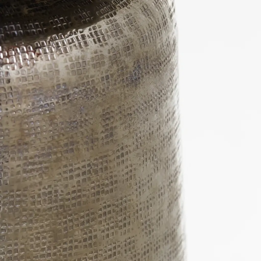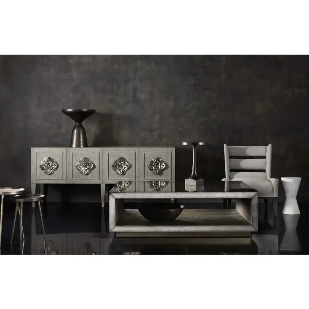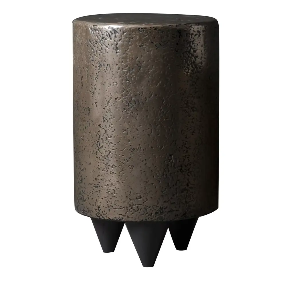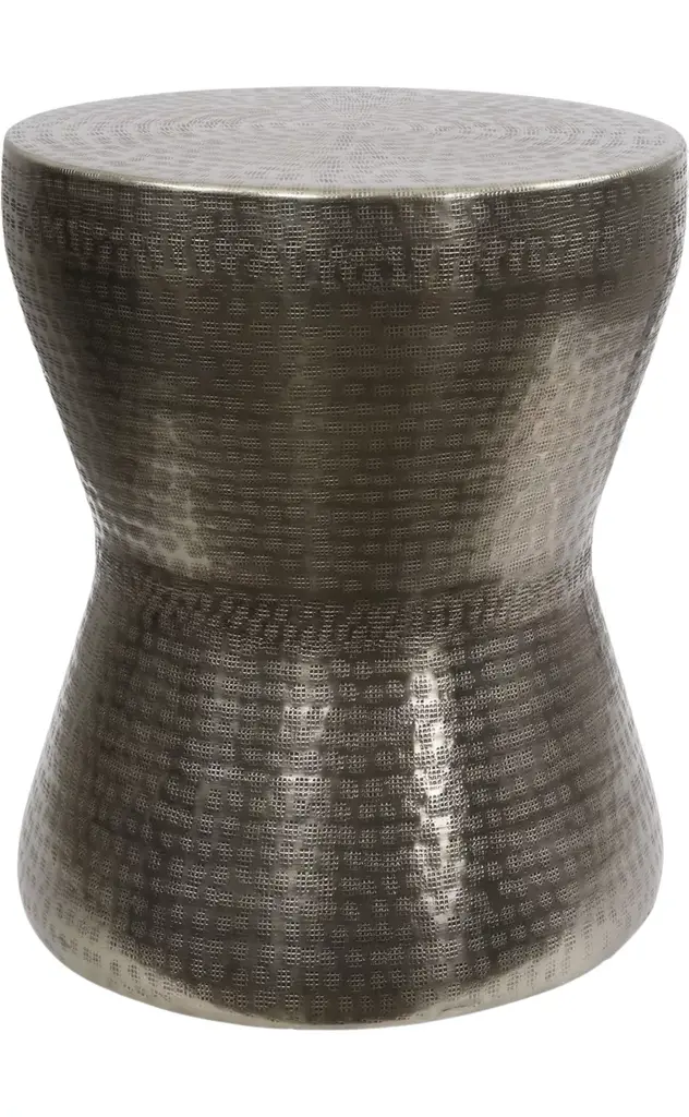 This end table offers a style and composition for any living space. What’s not to love about this cast aluminum table with a nickel finish. A conical pedestal supports a graceful bowl-shaped top. Bright and alluringly curvy, this table is just the right piece for a bit of glamour.