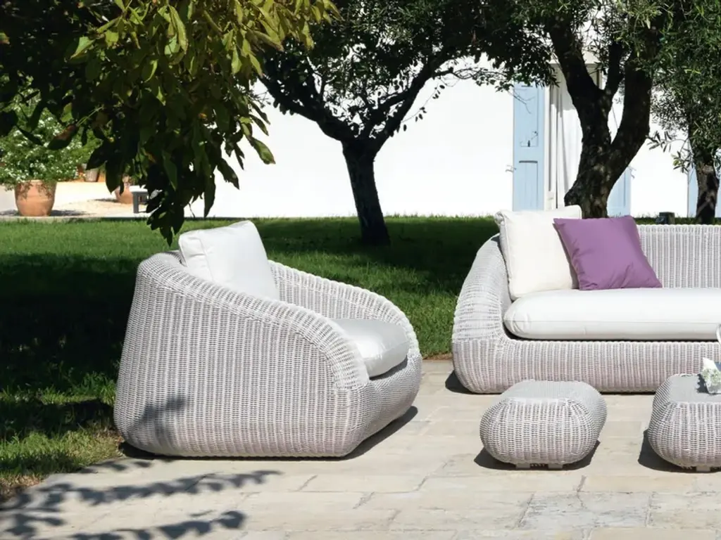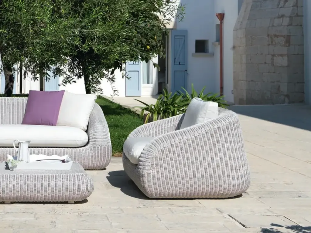 Loto square or rectangular coffee table in Etwick fibre with a natural finish. It completes Phorma range.The Phorma Line plays with volume and colour, blended harmoniously to give a refined, welcoming lounge that hints at a warm relaxing mood. Phorma is made in EtWick fibre, featuring a weave with a natural-looking rough finish. Tactile, synthetic and recyclable, EtWick fibre, available in the colours bark and white, is the perfect solution for those wanting a fusion of comfort and contemporaneity.