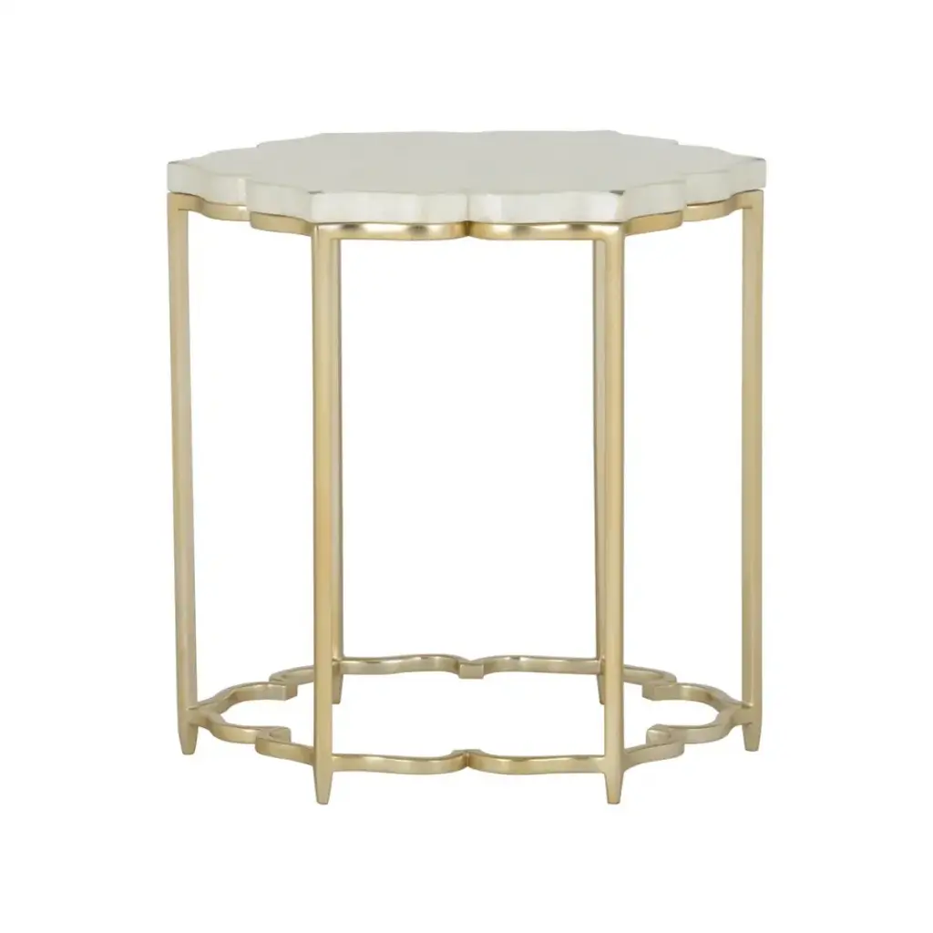 Beautifully crafted of Capiz shell and a gold finished metal base in the shape of a lotus, the Lotus Flower Side Table is a unique piece that brings natural beauty indoors.
