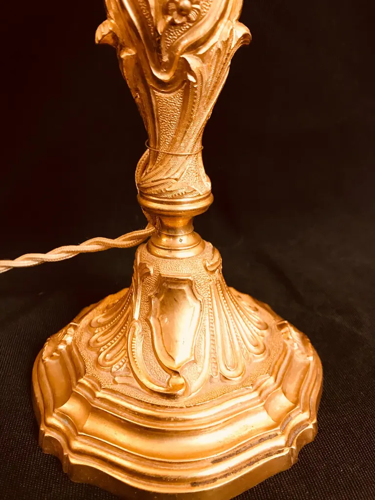 This little Louis XV style gilt bronze candlestick by Gherardo Degli Albizzi would be ideal to be placed on a bedside table.It resume the great taste of Rococo period decoration. As this, vegetal motifs are all-over this piece and it features great elegance and opulence in the forms, underlined by the great quality of hand chiseled bronze.