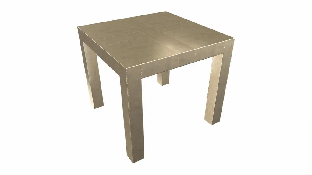 Alison Spear designed this elegant and minimal table for Stephanie Odegard during their trip together to Rajasthan, India. The craftsmen create patterns using different types of hammerings in the metal sheets clad over teak-wood structure.Crafted with utmost care and attention to detail, these Square Drink Table are made to order and are available in twelve metal clad finishes, ensuring that you can choose the perfect one to match your individual style and taste. The use of high-quality materials and expert craftsmanship ensure that each Art Deco Square Drink Table is not only beautiful but also a true piece of art.The Straight legs and side arms of this Art Deco Square Drink Table are hand carved from solid pieces of teak. Pattern makers trace and cut complex forms that will cover the chair in a skin of copper, white bronze, brass or antiqued white bronze The metal finishes will tarnish over time. Regular non-abrasive household metal polishes can be used to restore the original luster.Overall, if you're looking for a piece of furniture that combines luxury, comfort, and style, then the Art Deco Square Drink Table is an excellent choice. With its distinctive curved profile and multiple finish options, this Chair set is sure to elevate the look of any room it is placed in, and be a beloved addition to your home for years to come.The images shown in this listing are shot in different lighting conditions and/or are 3D illustrations. We encourage our customers to please request a sample or a full sample set of 12 finishes so that they can experience the finish first hand. Louise Art Deco Card Tea Square Drink Table Fine Hammered Brass by Alison Spear for Stephaine Odegard Size- 18"x 18"x 16"H Materials - Brass, Metal sheet, Teak, Wood, Metal Techniques: Hand-Crafted, Hand-Carved, Metal Work, Wood Work, Metal Wrapping, PolishedPlease note that moisture in air, sudden change in temperature and natural movement of wood over time causes the metal to wrinkle or bubble up. We use well seasoned, reclaimed teak and high quality marine grade MDF (wherever technically possible) to avoid and delay the mentioned changes. However a perfect stability of metal cannot be guaranteed. Please note that our smooth finish metal clad pieces will have some unavoidable tool marks. This is proof that everything is done by hand. The smooth finish will not come out like a machine made perfect surface and the master artisan will do their best to make it look as good/clean/stable/perfect as he possibly can.The antique white bronze finish is hand done by using an acidic chemical over the white bronze finish to recreate a natural patination. Like with the natural patination of silver, copper, or brass, the final result and color uniformity of the patina cannot be guaranteed. The goal of this finish is to achieve rainbow-like shades with dull, shiny, cloudy, and streaky patches to give an illusion of antiquing. Please note:None of our metal clad pieces are treated with a protective “finish” thus enabling the items to age naturally over time. We will of course polish them well before we pack them. a) Copper oxidizes faster than the other metals. In six to twelve months it will most likely lose its shine and will gradually turn to different shades of brown and/or green/blue. This aging process and its effect is referred to as verdigris. After a year the piece should not change much more. Copper does not rust, but does require periodic cleaning in order to retain its original shine if that the preferred option. ('BRASSO' or any known copper polish can be used to polish copper).b) Brass retains its shine for far longer than others, but will tarnish if not cleaned on occasion. ('BRASSO' is made to polish brass).c) White bronze, has the least tendency to show age or tarnish. If kept in a controlled climate, this metal will hold its shine for years. It can be cleaned with a cleanser and polished with a cloth. d) The antiqued white bronze finish will react with the natural elements the fastest in the beginning but it too will stop reacting and will settle down in a stable state like copper after 6-12 months. Since it is already antiqued and looked like it is tarnished, as described in an earlier message, this fast reaction will not change the over all look. In that way this surface is most forgiving. The images shown in this listing are shot in different lighting conditions and/or are 3D illustrations. We encourage our customers to please request a sample or a full sample set of 12 finishes so that they can experience the finish first hand.