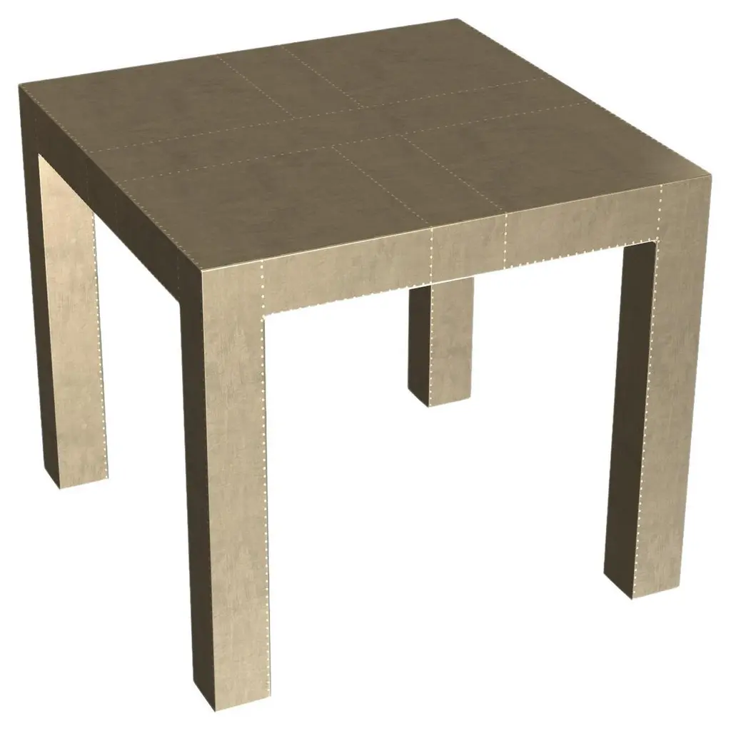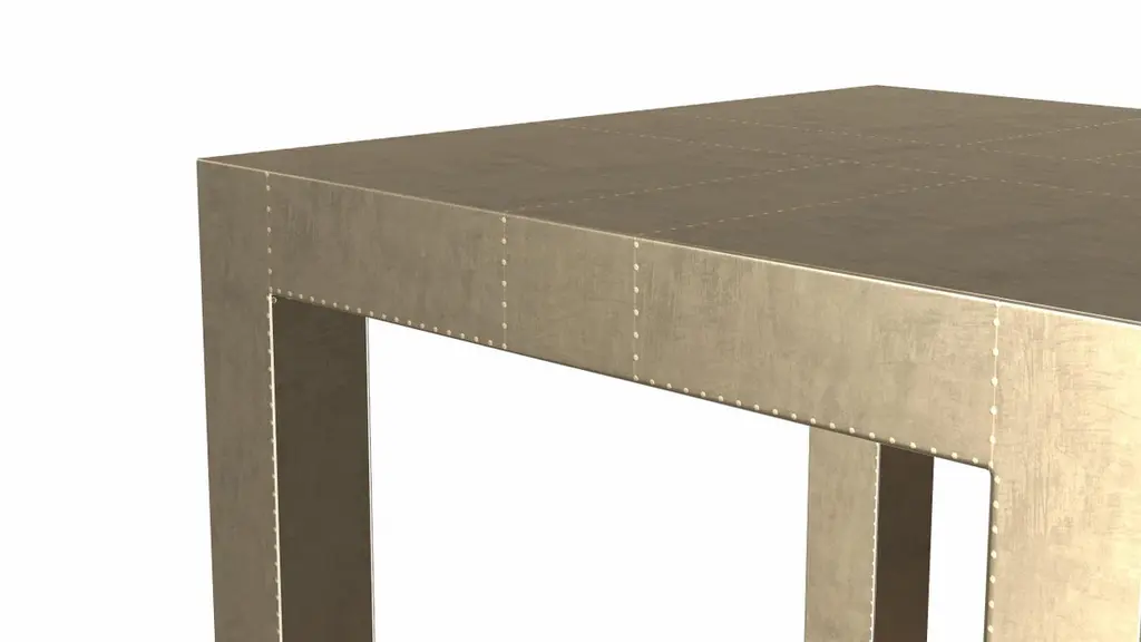 Alison Spear designed this elegant and minimal table for Stephanie Odegard during their trip together to Rajasthan, India. The craftsmen create patterns using different types of hammerings in the metal sheets clad over teak-wood structure.Crafted with utmost care and attention to detail, these Square Drink Table are made to order and are available in twelve metal clad finishes, ensuring that you can choose the perfect one to match your individual style and taste. The use of high-quality materials and expert craftsmanship ensure that each Art Deco Square Drink Table is not only beautiful but also a true piece of art.The Straight legs and side arms of this Art Deco Square Drink Table are hand carved from solid pieces of teak. Pattern makers trace and cut complex forms that will cover the chair in a skin of copper, white bronze, brass or antiqued white bronze The metal finishes will tarnish over time. Regular non-abrasive household metal polishes can be used to restore the original luster.Overall, if you're looking for a piece of furniture that combines luxury, comfort, and style, then the Art Deco Square Drink Table is an excellent choice. With its distinctive curved profile and multiple finish options, this Chair set is sure to elevate the look of any room it is placed in, and be a beloved addition to your home for years to come.The images shown in this listing are shot in different lighting conditions and/or are 3D illustrations. We encourage our customers to please request a sample or a full sample set of 12 finishes so that they can experience the finish first hand. Louise Art Deco Carts and Bar Carts Square Drink Table Smooth Brass by Alison Spear for Stephanie Odegard Size- 18"x 18"x 16"H Materials - Brass, Metal sheet, Teak, Wood, Metal Techniques: Hand-Crafted, Hand-Carved, Metal Work, Wood Work, Metal Wrapping, PolishedPlease note that moisture in air, sudden change in temperature and natural movement of wood over time causes the metal to wrinkle or bubble up. We use well seasoned, reclaimed teak and high quality marine grade MDF (wherever technically possible) to avoid and delay the mentioned changes. However a perfect stability of metal cannot be guaranteed. Please note that our smooth finish metal clad pieces will have some unavoidable tool marks. This is proof that everything is done by hand. The smooth finish will not come out like a machine made perfect surface and the master artisan will do their best to make it look as good/clean/stable/perfect as he possibly can.The antique white bronze finish is hand done by using an acidic chemical over the white bronze finish to recreate a natural patination. Like with the natural patination of silver, copper, or brass, the final result and color uniformity of the patina cannot be guaranteed. The goal of this finish is to achieve rainbow-like shades with dull, shiny, cloudy, and streaky patches to give an illusion of antiquing. Please note:None of our metal clad pieces are treated with a protective “finish” thus enabling the items to age naturally over time. We will of course polish them well before we pack them. a) Copper oxidizes faster than the other metals. In six to twelve months it will most likely lose its shine and will gradually turn to different shades of brown and/or green/blue. This aging process and its effect is referred to as verdigris. After a year the piece should not change much more. Copper does not rust, but does require periodic cleaning in order to retain its original shine if that the preferred option. ('BRASSO' or any known copper polish can be used to polish copper).b) Brass retains its shine for far longer than others, but will tarnish if not cleaned on occasion. ('BRASSO' is made to polish brass).c) White bronze, has the least tendency to show age or tarnish. If kept in a controlled climate, this metal will hold its shine for years. It can be cleaned with a cleanser and polished with a cloth. d) The antiqued white bronze finish will react with the natural elements the fastest in the beginning but it too will stop reacting and will settle down in a stable state like copper after 6-12 months. Since it is already antiqued and looked like it is tarnished, as described in an earlier message, this fast reaction will not change the over all look. In that way this surface is most forgiving. The images shown in this listing are shot in different lighting conditions and/or are 3D illustrations. We encourage our customers to please request a sample or a full sample set of 12 finishes so that they can experience the finish first hand.
