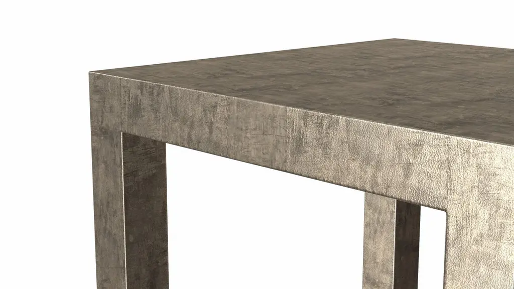 Alison Spear designed this elegant and minimal table for Stephanie Odegard during their trip together to Rajasthan, India. The craftsmen create patterns using different types of hammerings in the metal sheets clad over teak-wood structure.Crafted with utmost care and attention to detail, these Square Drink Table are made to order and are available in twelve metal clad finishes, ensuring that you can choose the perfect one to match your individual style and taste. The use of high-quality materials and expert craftsmanship ensure that each Art Deco Square Drink Table is not only beautiful but also a true piece of art.The Straight legs and side arms of this Art Deco Square Drink Table are hand carved from solid pieces of teak. Pattern makers trace and cut complex forms that will cover the chair in a skin of copper, white bronze, brass or antiqued white bronze The metal finishes will tarnish over time. Regular non-abrasive household metal polishes can be used to restore the original luster.Overall, if you're looking for a piece of furniture that combines luxury, comfort, and style, then the Art Deco Square Drink Table is an excellent choice. With its distinctive curved profile and multiple finish options, this Chair set is sure to elevate the look of any room it is placed in, and be a beloved addition to your home for years to come.The images shown in this listing are shot in different lighting conditions and/or are 3D illustrations. We encourage our customers to please request a sample or a full sample set of 12 finishes so that they can experience the finish first hand. Louise Art Deco Farm Tables Square Drink Table Fine Hammered Antique Bronze by Alison Spear for Stephanie OdegardSize- 18"x 18"x 16"HMaterials - Antique Bronze, Metal sheet, Teak, Wood, MetalTechniques: Hand-Crafted, Hand-Carved, Metal Work, Wood Work, Metal Wrapping, PolishedPlease note that moisture in air, sudden change in temperature and natural movement of wood over time causes the metal to wrinkle or bubble up. We use well seasoned, reclaimed teak and high quality marine grade MDF (wherever technically possible) to avoid and delay the mentioned changes. However a perfect stability of metal cannot be guaranteed. Please note that our smooth finish metal clad pieces will have some unavoidable tool marks. This is proof that everything is done by hand. The smooth finish will not come out like a machine made perfect surface and the master artisan will do their best to make it look as good/clean/stable/perfect as he possibly can.The antique white bronze finish is hand done by using an acidic chemical over the white bronze finish to recreate a natural patination. Like with the natural patination of silver, copper, or brass, the final result and color uniformity of the patina cannot be guaranteed. The goal of this finish is to achieve rainbow-like shades with dull, shiny, cloudy, and streaky patches to give an illusion of antiquing. Please note:None of our metal clad pieces are treated with a protective “finish” thus enabling the items to age naturally over time. We will of course polish them well before we pack them. a) Copper oxidizes faster than the other metals. In six to twelve months it will most likely lose its shine and will gradually turn to different shades of brown and/or green/blue. This aging process and its effect is referred to as verdigris. After a year the piece should not change much more. Copper does not rust, but does require periodic cleaning in order to retain its original shine if that the preferred option. ('BRASSO' or any known copper polish can be used to polish copper).b) Brass retains its shine for far longer than others, but will tarnish if not cleaned on occasion. ('BRASSO' is made to polish brass).c) White bronze, has the least tendency to show age or tarnish. If kept in a controlled climate, this metal will hold its shine for years. It can be cleaned with a cleanser and polished with a cloth. d) The antiqued white bronze finish will react with the natural elements the fastest in the beginning but it too will stop reacting and will settle down in a stable state like copper after 6-12 months. Since it is already antiqued and looked like it is tarnished, as described in an earlier message, this fast reaction will not change the over all look. In that way this surface is most forgiving. The images shown in this listing are shot in different lighting conditions and/or are 3D illustrations. We encourage our customers to please request a sample or a full sample set of 12 finishes so that they can experience the finish first hand.