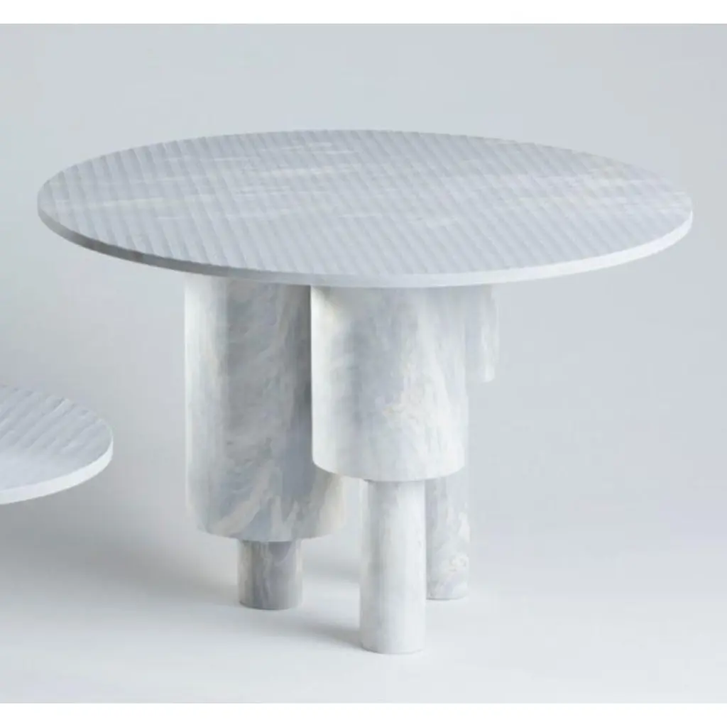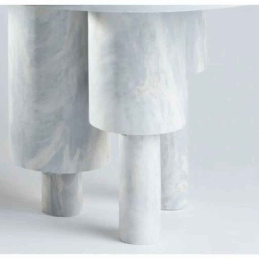 Low game of stone side table, blue by Josefina MunozGame of stone CollectionDimensions: H40 x Ø50cmMaterial: marble Palissandro blueAvailable in: tall, small and XS sizes.Interpreting the expressiveness of stone offcuts, from a block to a fragment and reintegrate them into a dynamic, organic process. A poetic and delicate vision of Josefina Muñoz and Pietre Trovanti that explores the elegance that comes to life from the imperfect stone, turning into a home decor collection.In GAME OF STONE Josefina Muñoz, designer based in Geneva, Switzerland, transform an uneven block into a handcrafted collection of small tables with different heights, alternating in a play of shapes and compositions with a playful character. The finishing of the surface, in the light or in the shade, create rhythmic configurations.The work of Geneva-based Argentine designer Josefina Munoz, takes a macro perspective to the world of contemporary design and the influential sometimes seemingly distant factors that determine the industry’s course. With training in Design for luxury and Craftsmanship, she designs with a keen sense of underlying meanings and symbolism that go hand in hand with quality.Nominated for Swiss Design Awards 2019, Winner of the Art & Design Indosuez Award 2019 of the Art and Crafts Switzerland Association, she participated in exhibitions around the world, including the Milan Design Week (2016, 2017, 2018) “De Mains de Maîtres” in Luxembourg (2017), the London Design Festival at the Victoria and Albert Museum in 2015 and Collect 2019 at Saatchii Gallery in London.Her personal work in close partnership with true artisans in different fields, finding the particularities of individual expertises that offer a whole new world of artistic expressions. With her creations, she aspires to give the opportunity for the viewer to live a moment of serenity. As a designer, she seeks to inspire, inform and provide a voice to artistic professions such as ceramic, stone and glass, among others. After starting her own studio in 2016, she is perpetually seeking out new experiences and collaborations around the world.