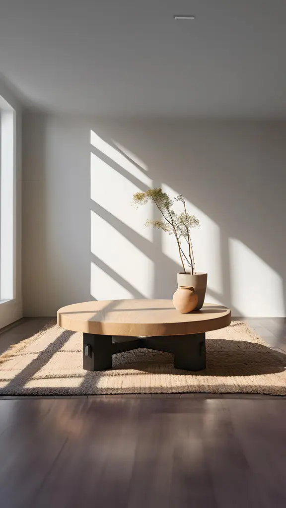 Low-Profile Round Oak Table - Serene Fundamenta 36 By Nono