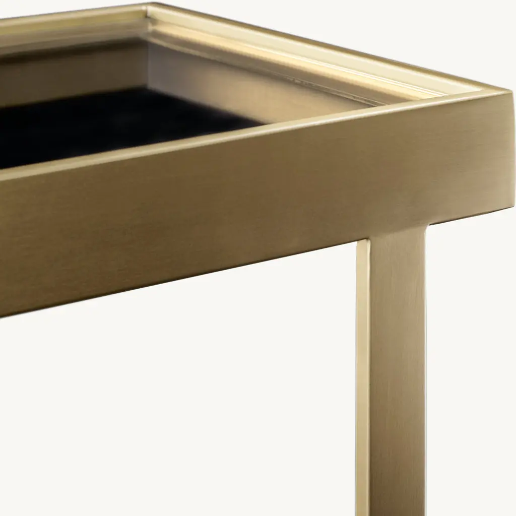 Unencumbered geometry and clean lines define our Lowe side table. The silhouette features echoing shapes – simple, classic forms beautifully executed in solid metal and glass.