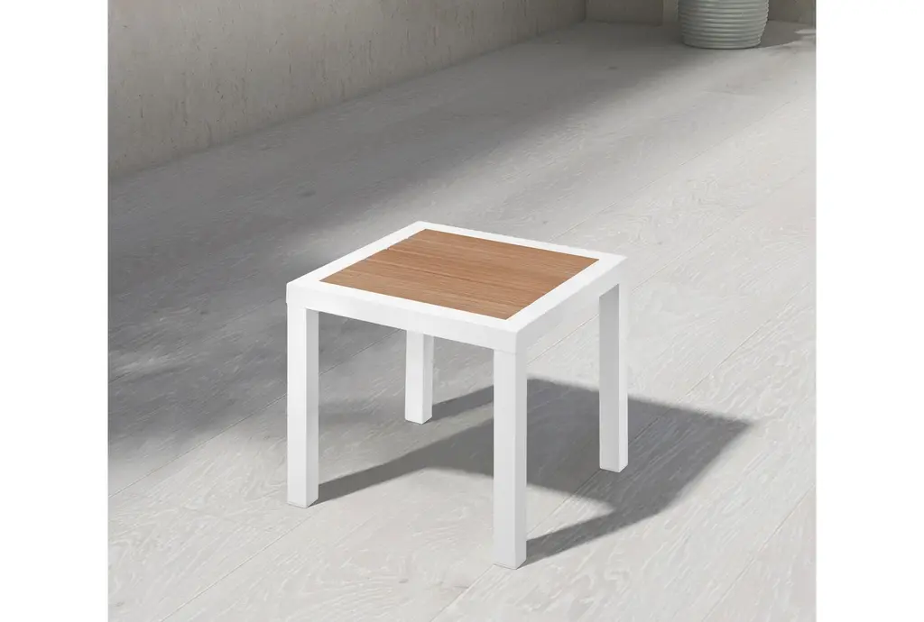 The Lucas Brown Wood Look Accent Paneling Outdoor Patio Aluminum End Table is a stylish and functional addition to any outdoor space. Its modern design and casual style make it a versatile piece that complements various decor themes. The combination of aluminum and plastic materials ensures durability and longevity.
