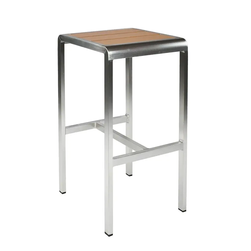 Lucas Grey Wood Look Accent Paneling Outdoor Patio Aluminum Square Bar Table