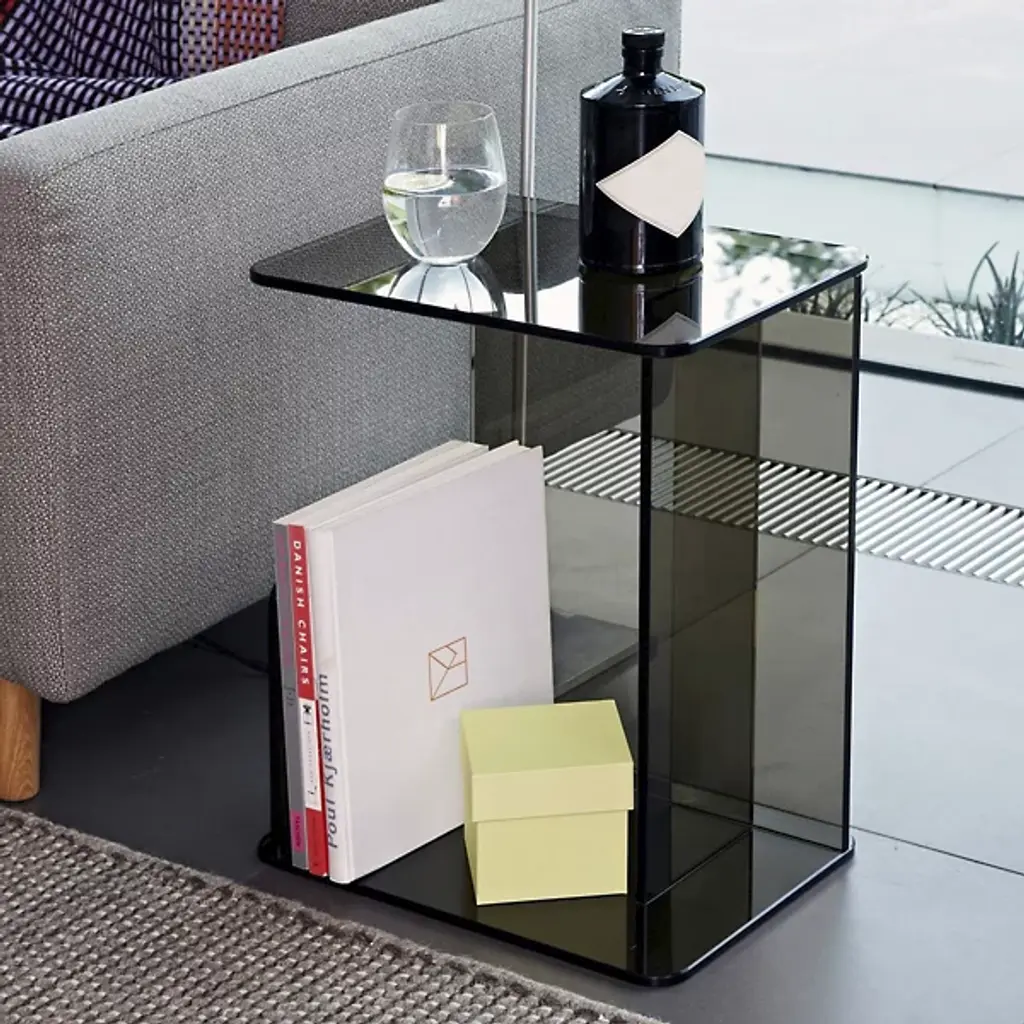The Lucent Side Table by Case Furniture combines retro refinement with fabulous functionality, showcasing a minimalist aesthetic that effortlessly coordinates with various decor styles. The daring design was created by Matthew Hilton and relies on precision in the alignment of its glass panels, creating a stark and sophisticated effect enhanced by translucent overlays. The tempered glass construction features rounded corners and offers outstanding durability, making it safe and resilient for everyday use. With its tall rectangular shape, this table facilitates internal divisions for displaying items or storing essentials within easy reach. Crafted from tough tempered glass, it strikes the perfect balance between elegance and sturdiness, suitable for a range of settings.