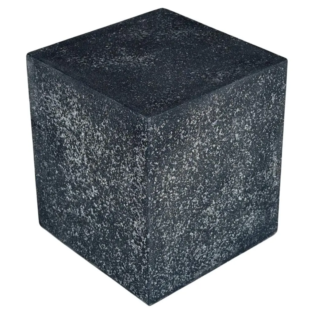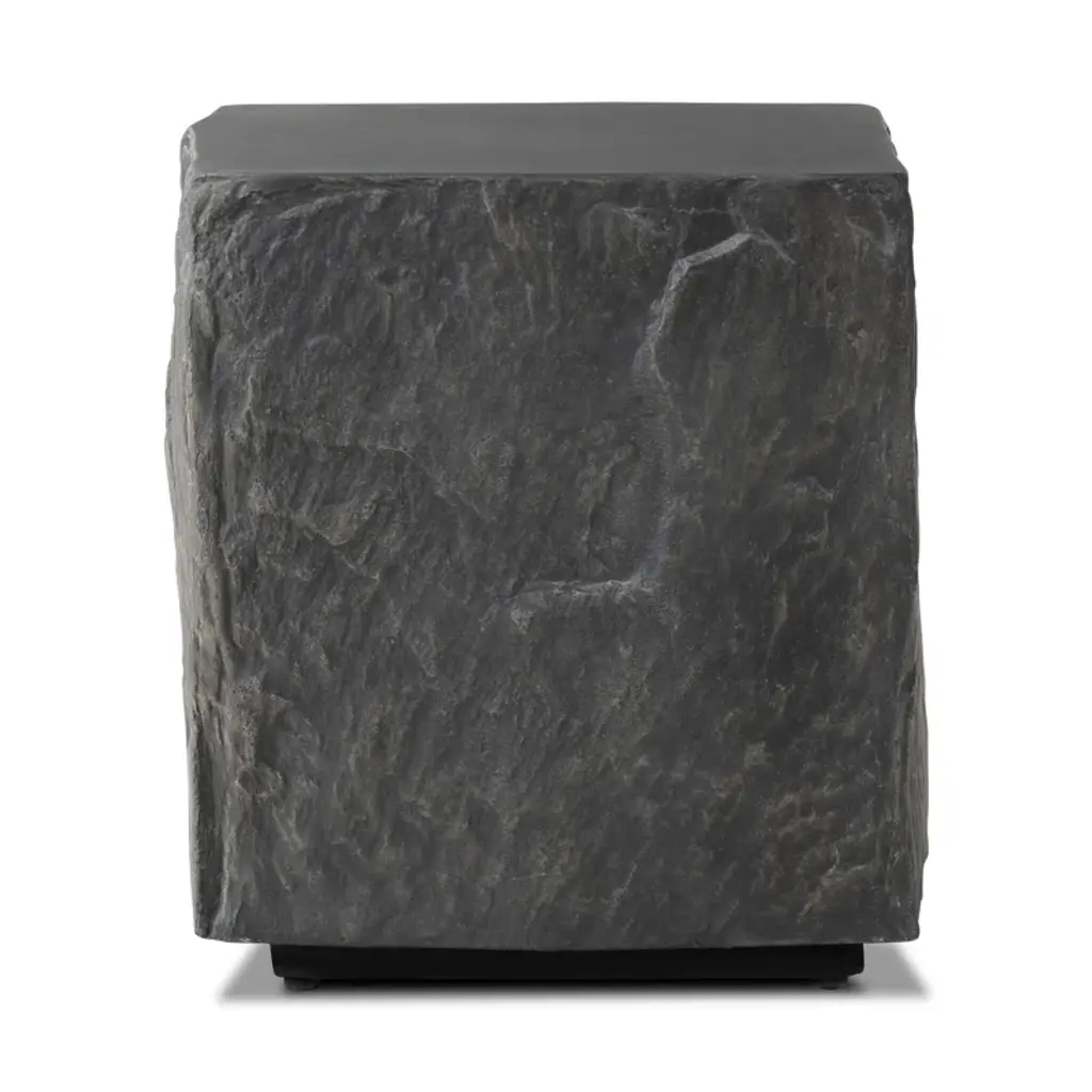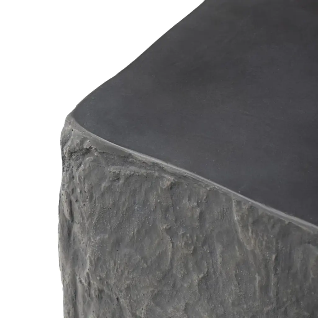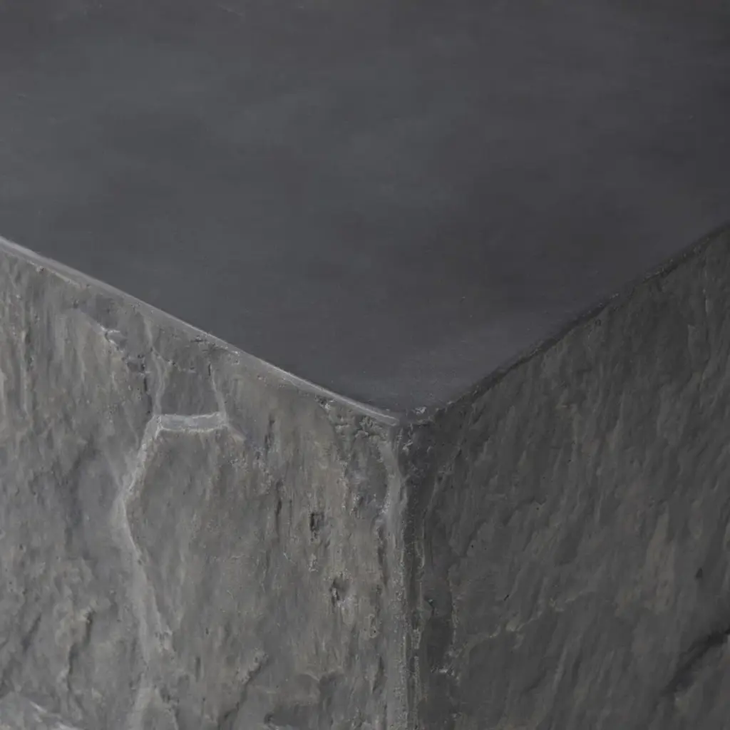 A bold concrete end table from their Solterra collection. Features an intricately crafted black or brown slate effect finish and completed with a 2" brushed brass base.