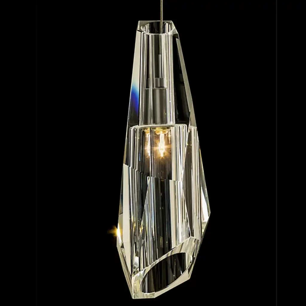 Designed for modern décor. The Luma Mini Pendant by Hubbardton Forge stands out as a singular brilliant pendant suspended from a matte metal downrod. The grand crystal shade is faceted to reflect light in various directions, making it the perfect pendant for hanging over small surfaces like end tables or illuminating small areas like foyers. Though it looks stunning as a single pendant, it can also be grouped with multiple units for a stunning light display.
