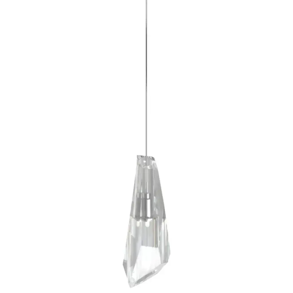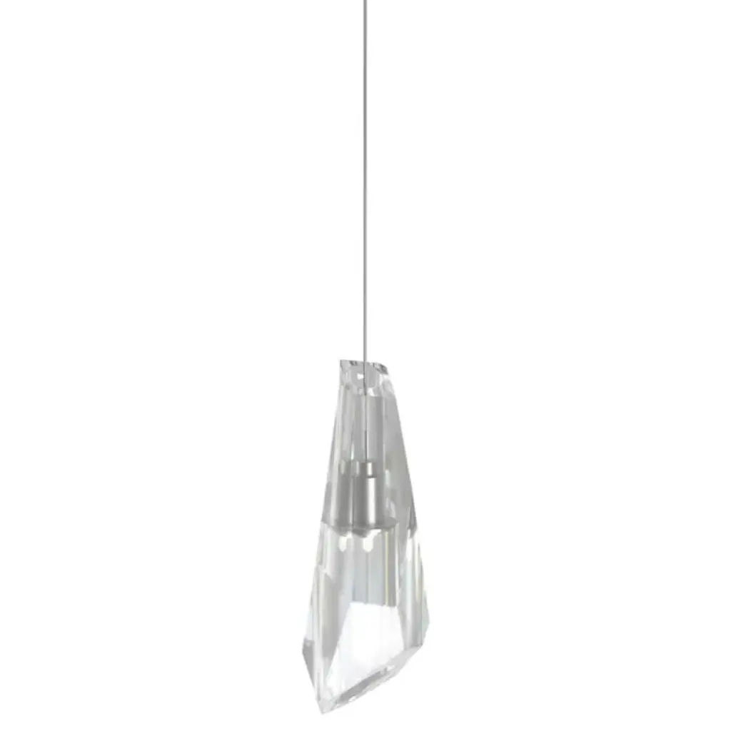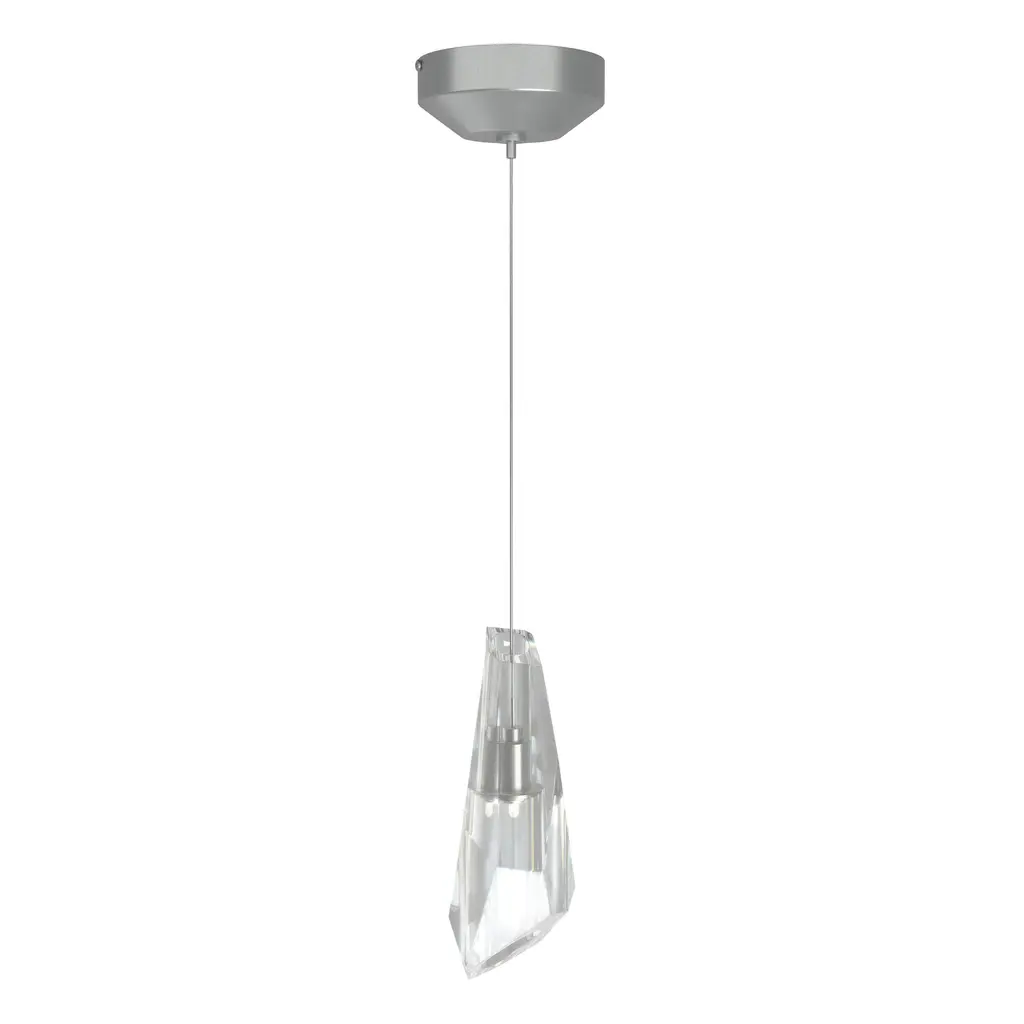 Designed for modern décor. The Luma Mini Pendant by Hubbardton Forge stands out as a singular brilliant pendant suspended from a matte metal downrod. The grand crystal shade is faceted to reflect light in various directions, making it the perfect pendant for hanging over small surfaces like end tables or illuminating small areas like foyers. Though it looks stunning as a single pendant, it can also be grouped with multiple units for a stunning light display.