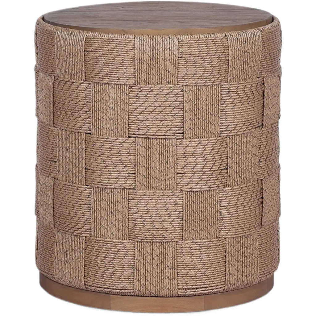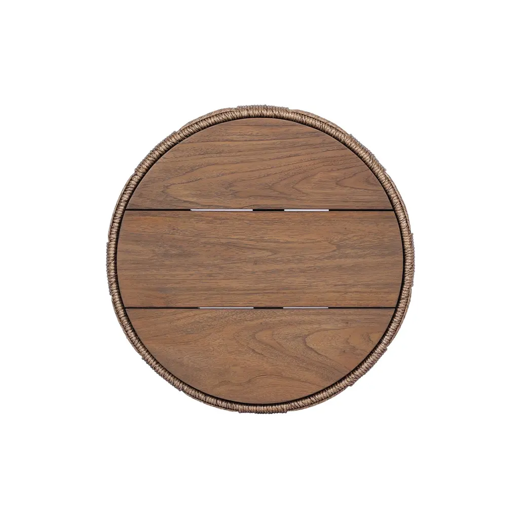 Luxen Outdoor Woven Wicker Teak Round End Table, Stained Toasted Brown