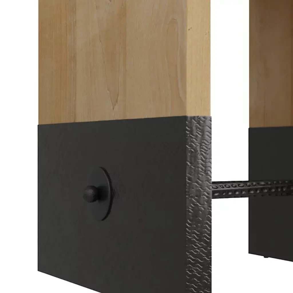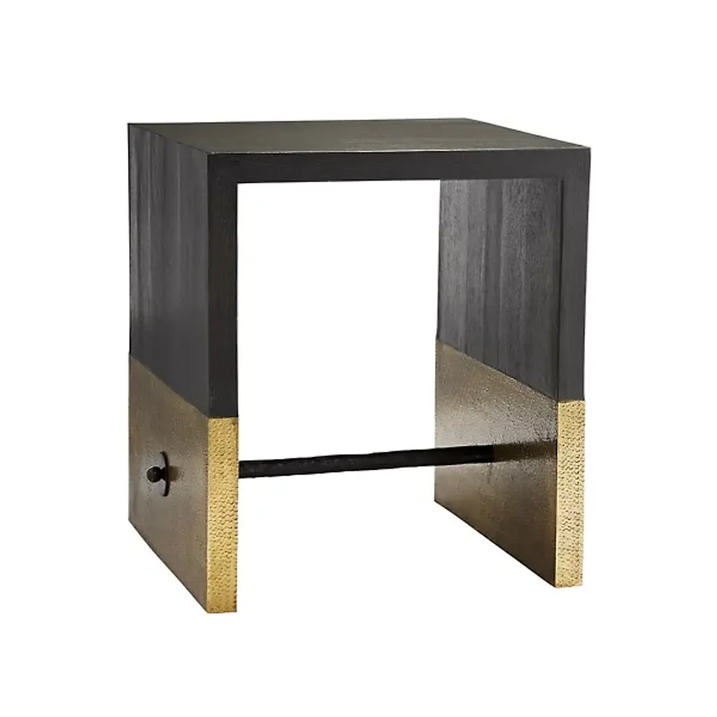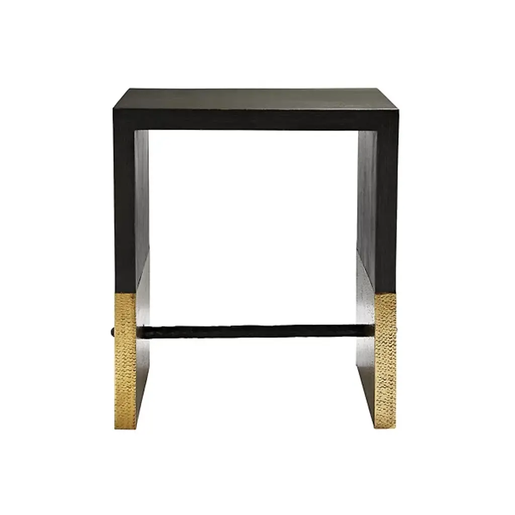 Embrace elegance in simplicity with the Lyle Side Table from Arteriors. Made in India, its inverted-U shape guarantees the perfect blend of simple form with stark function. Clean top and side surfaces combine with a stabilizing bar through each side of the patterned, metal-capped base to create strength and stability. An excellent choice refined enough for a living room conversation piece while staying sufficiently utilitarian for use in a hallway, foyer, or office space.