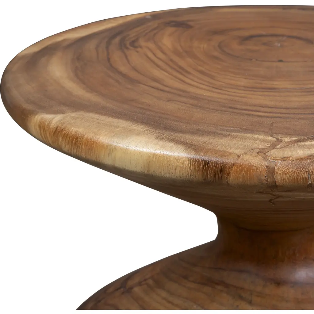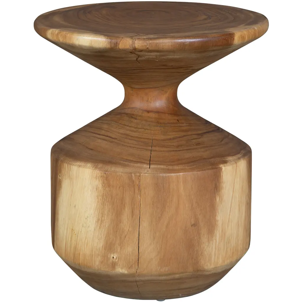 Crafted From Suar Wood, This Accent Table Showcases Unique Wood Grain Patterns And A Sculptural Hourglass Shape. It Adds A Perfect Blend Of Form And Function To Any Space. Solid Wood Will Continue To Move With Temperature And Humidity Changes, Which Can Result In Cracks And Uneven Surfaces, Adding To Its Authenticity And Character.