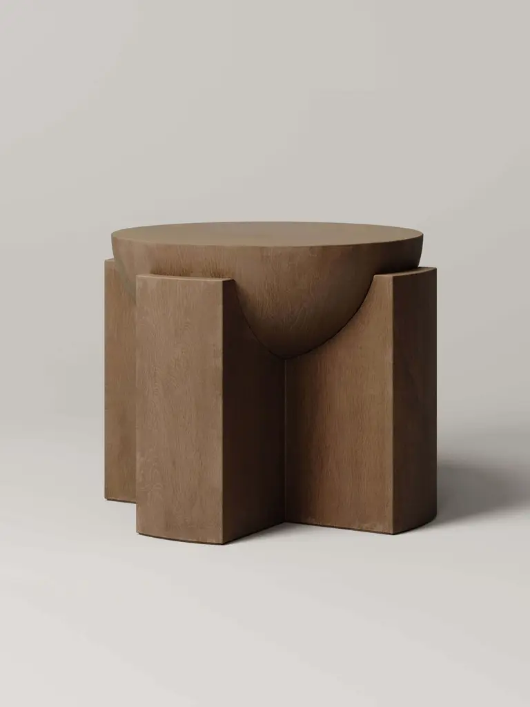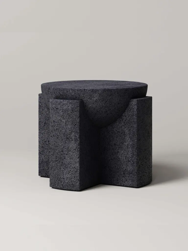 Carved with precision, the M_002 Side Table balances between architectural strength and sculptural form. Its strong geometric lines cradle a half-dome sphere which floats effortlessly within its base evoking a sense of quiet elegance.Designed by Studio Le Cann exclusively for Monolith StudioNumbered and SignedGiven the unique nature of stone, each piece will vary in look.Available in Black Lava Rock, Oak and Walnut.