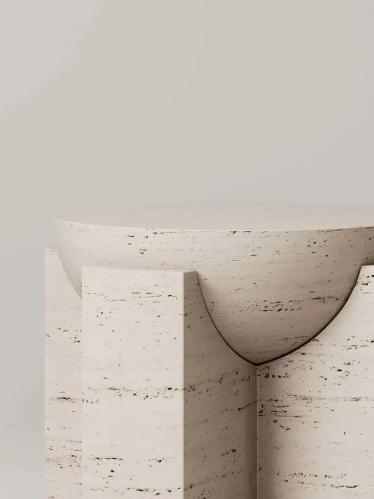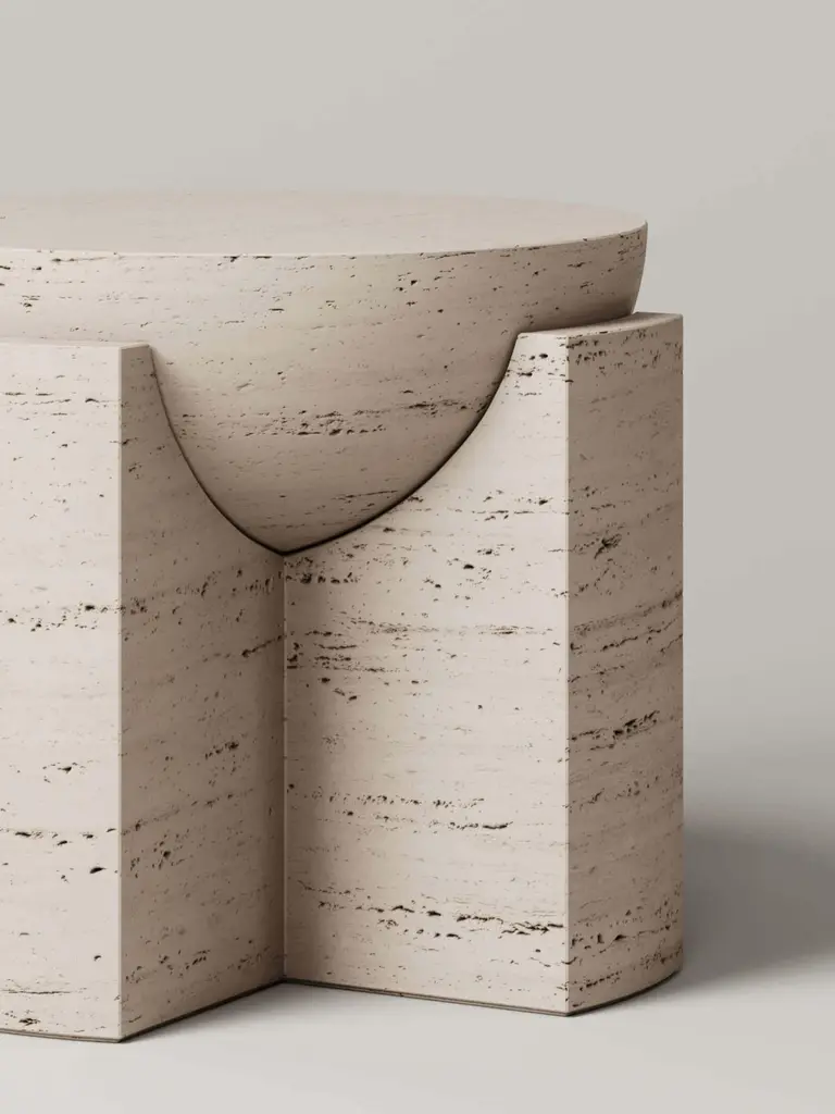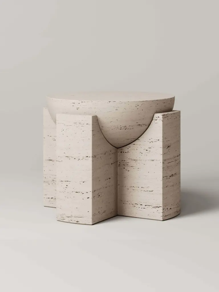 M_002 Side Table Designed By Studio Le Cann For Monolith Studio, Travertine