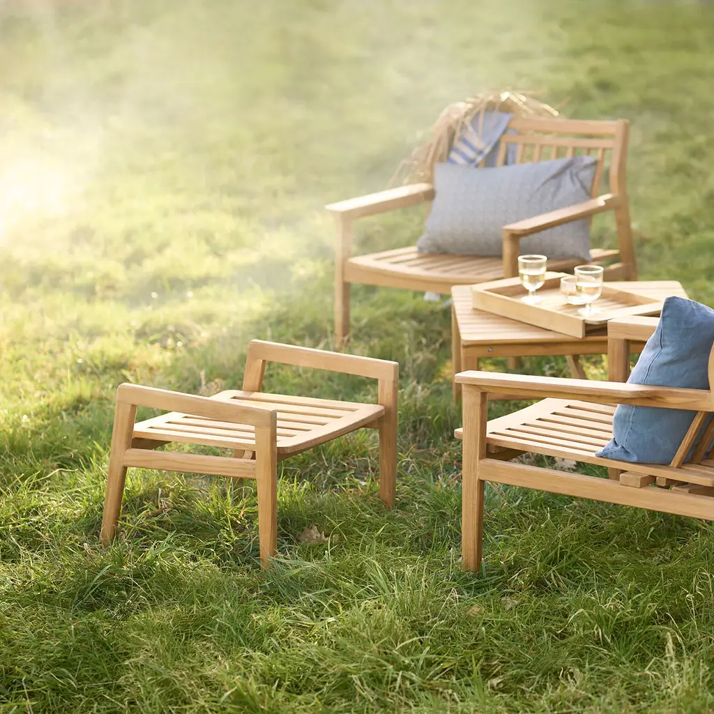The M7 Sammen Outdoor Footstool from FDB Mobler exemplifies how thoughtful design elevates even the most understated pieces. Crafted to match the series' refined aesthetic and FDB Møbler's furniture-making heritage, this footstool transcends its traditional role. With the addition of the Sammen tray, it transforms into an elegant side table, showcasing Danish ingenuity. Enhanced by coordinating cushions, it completes the Sammen collection while extending the possibilities of outdoor living with sophisticated functionality. Highlights