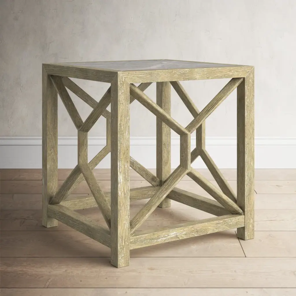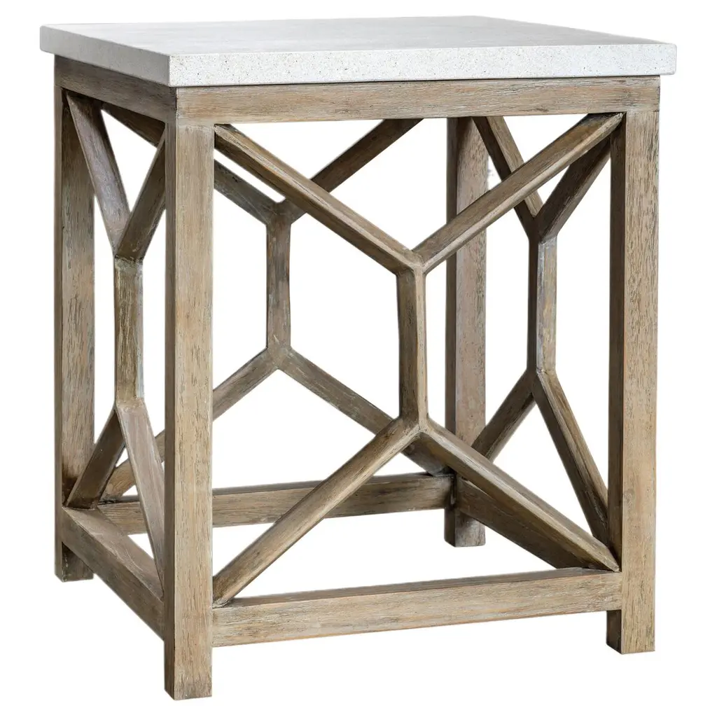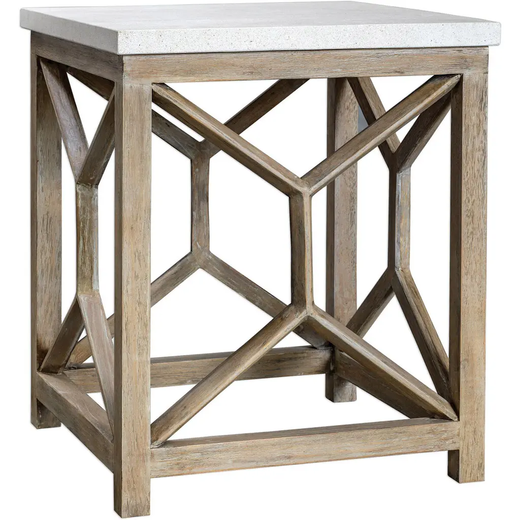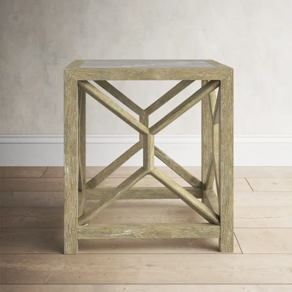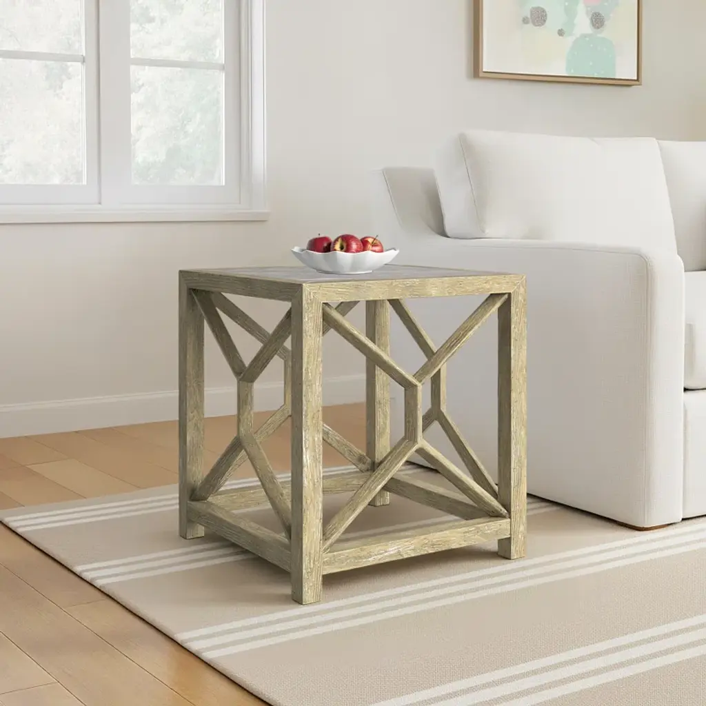 Upgrade your living space with this elegant end table, featuring a square stone veneer top and a tasteful solid wood base. Its four-leg design adds a touch of sophistication to any room, while the dowel joint construction ensures reliable support. With a weight capacity of 75 lbs, this table is perfect for displaying your favorite decor pieces or holding your evening cup of tea. Plus, the kiln-dried wood adds a touch of timelessness to your home. Just remember, this table is designed for residential use only.