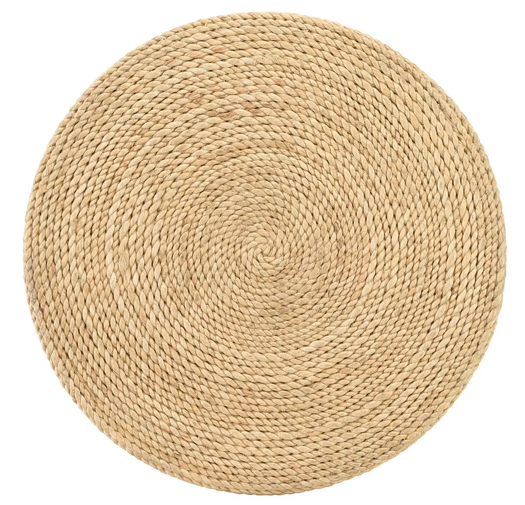 Rope made of durable, sustainable abaca is painstakingly hand-wrapped around this wood table, which is topped with glass to create a smooth surface. Foam on the underside of the base protects your floors.
