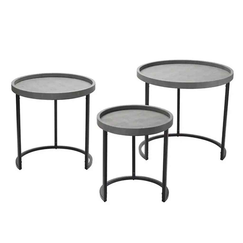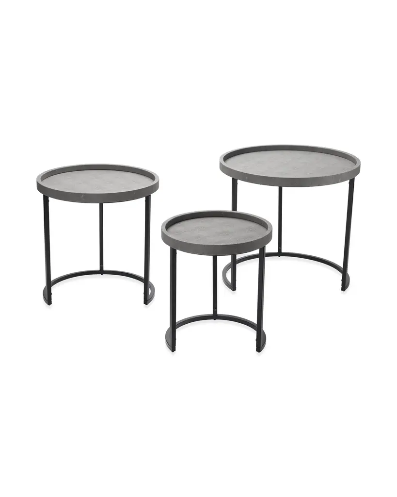 Bring a sense of completion to your decorative arrangement with the Maddox Side Tables, Set of 3 from Jamie Young. Each side table in this set of 3 is composed of fine metal and MDF material, which have been worked into an elegant, contoured form. Predominantly cylindrical in shape and open at the sides, these tables give your living space a contemporary look. At your side tables’ tops rest beautiful, round tray-style tabletops for the placement of your accessories.