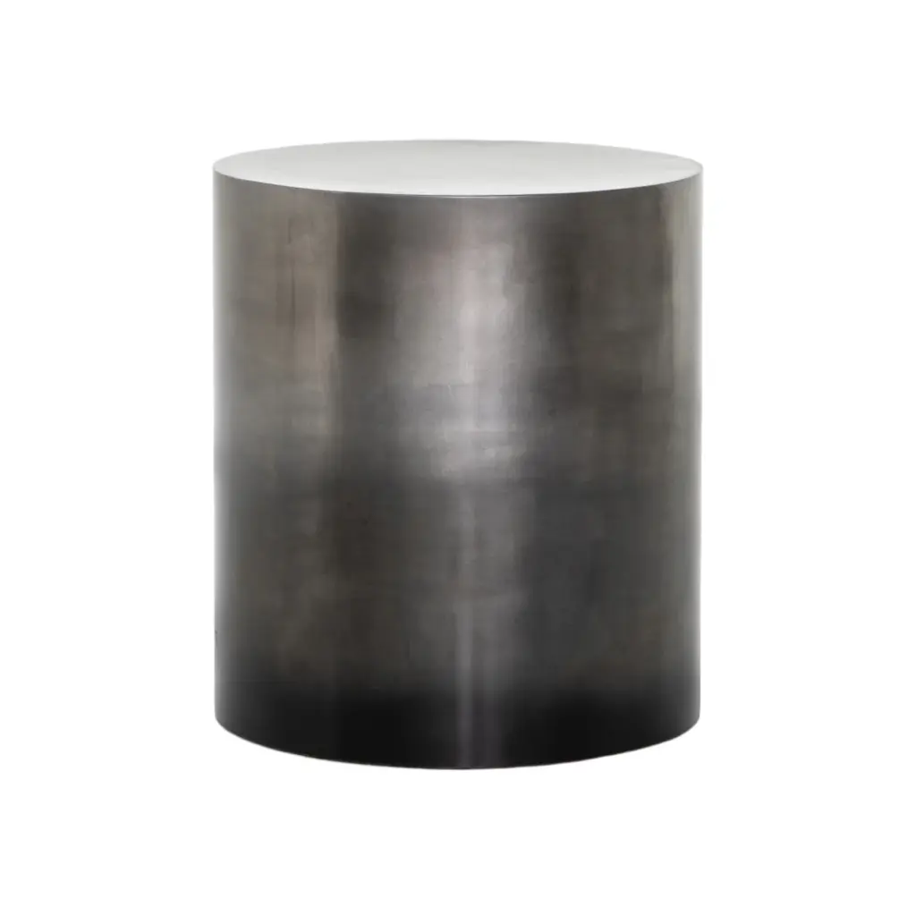 Cylindrical in shape with a dramatic ombré appearance, our Maddux Industrial Loft Antique Silver Ombre Iron Cylinder Round Drum End Table makes a statement wherever it’s displayed. Crafted from iron and finished in antique pewter, this versatile accent piece brings a glamorous touch to your home.