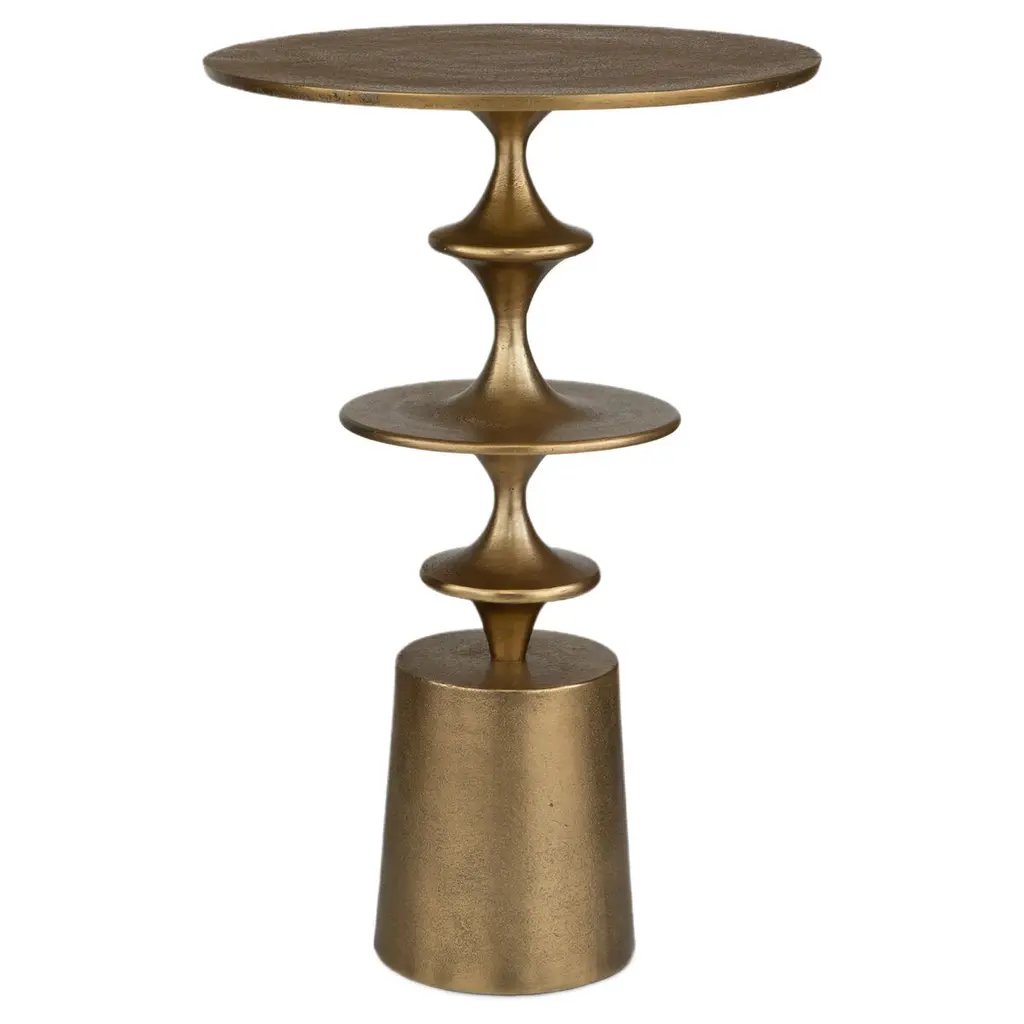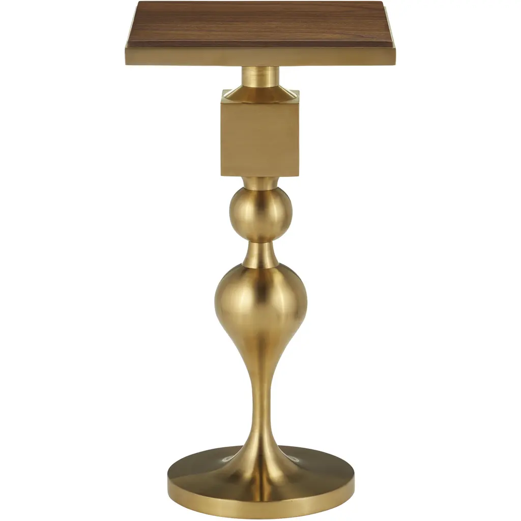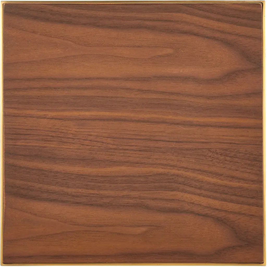 Geometric and gorgeous, the Maeve Accent Table is made of stainless steel in a brushed brass finish with an inset walnut top. The gold accent table gets its punch from its series of stacked shapes that rise toward its top, while the square piece of wood brings an uptick in warmth.