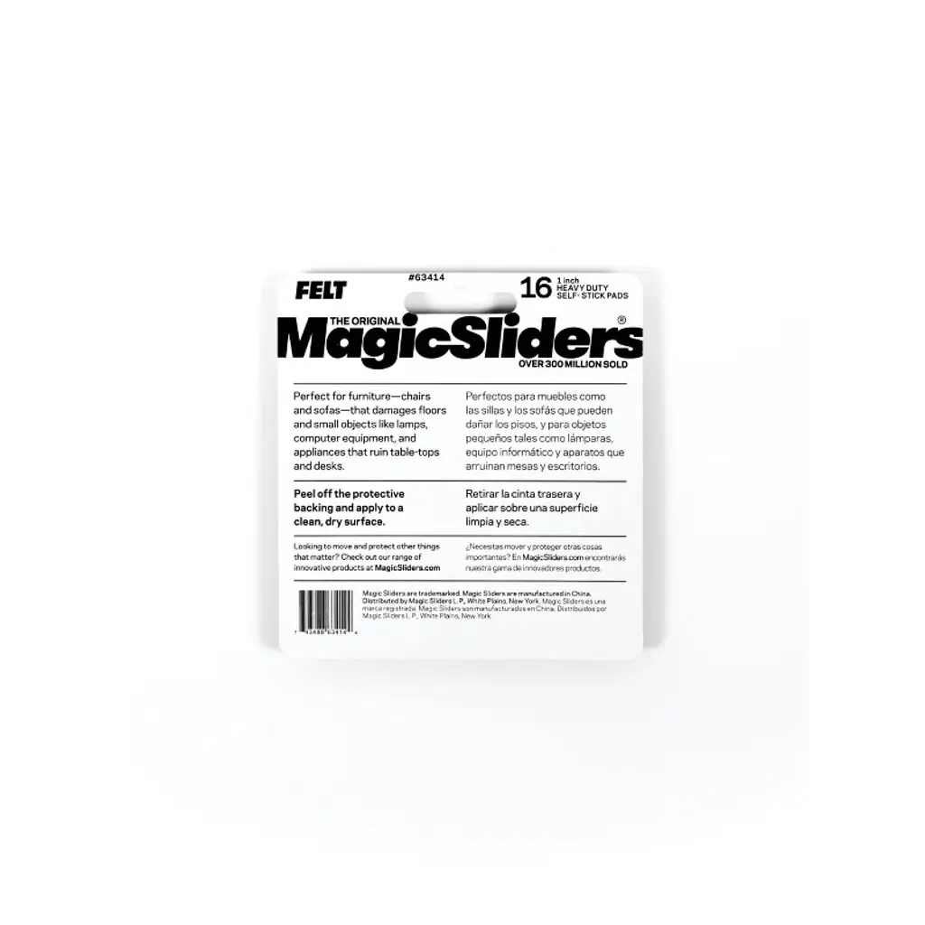 Magic Sliders are the ultimate multi-surface friction fighters, designed for use on carpet, wood, vinyl, and tile. Each value-packed set includes a variety of felt pads in multiple shapes and sizes, making it easy to protect every piece of furniture throughout your home. With a soft yet durable felt surface, these pads shield hardwood, tile, laminate, and vinyl floors from scratches, scuffs, and everyday wear. They also ensure quiet, smooth furniture movement by eliminating screeching or dragging sounds when moving chairs, tables, or décor items. Perfect for high-use furniture such as dining chairs, bar stools, coffee tables, and side tables, Magic Sliders help maintain the pristine look of your floors even with daily activity. The quick peel-and-stick application requires no tools, and the strong adhesive keeps pads securely in place even with frequent use. Designed to blend seamlessly with furniture, their neutral tones and low-profile appearance stay discreet while offering powerful protection. For a customized fit, larger pads can easily be trimmed to match unique shapes or oversized items. Additionally, they help reduce furniture vibration and noise, making them especially useful in apartments, offices, or shared living spaces. A smart choice for both renters and homeowners, Magic Sliders offer an easy, affordable way to protect your floors and avoid costly damage.