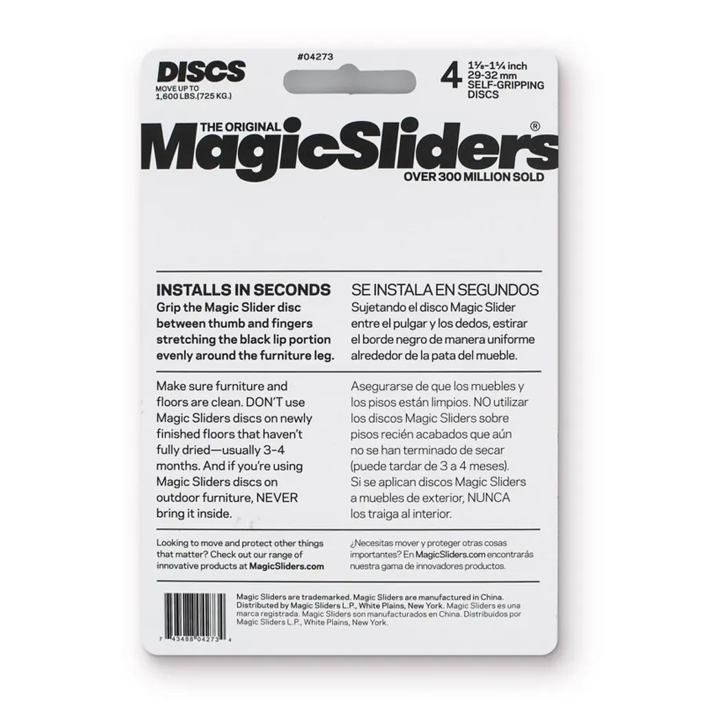 Magic Sliders with Patented Grip Tip technology deliver a secure, no-slip fit that ensures a snug hold on furniture legs, preventing shifting, slipping, or falling off during movement. They provide the ultimate combination of smooth, quiet gliding action with a firm, locked-on grip. Designed to protect all floor surfaces, they prevent scratches, scuffs, and gouges on hardwood, tile, vinyl, and laminate. Their versatile design accommodates a variety of leg shapes and sizes, making them perfect for chairs, tables, stools, and more—even those with angled or round legs. Built for durability, they withstand everyday use in high-traffic areas like homes, offices, and classrooms. By eliminating squeaking and dragging noises, they offer a smooth and quiet moving experience. Installation is simple and tool-free—just push them onto the furniture leg with no glue or complicated instructions required. Ideal for frequently moved pieces such as dining chairs, bar stools, and side tables, these sliders stay securely in place even when the furniture is lifted or tilted. Featuring long-lasting glide pads made from premium materials, they resist wear over time, ensuring reliable performance with repeated use.