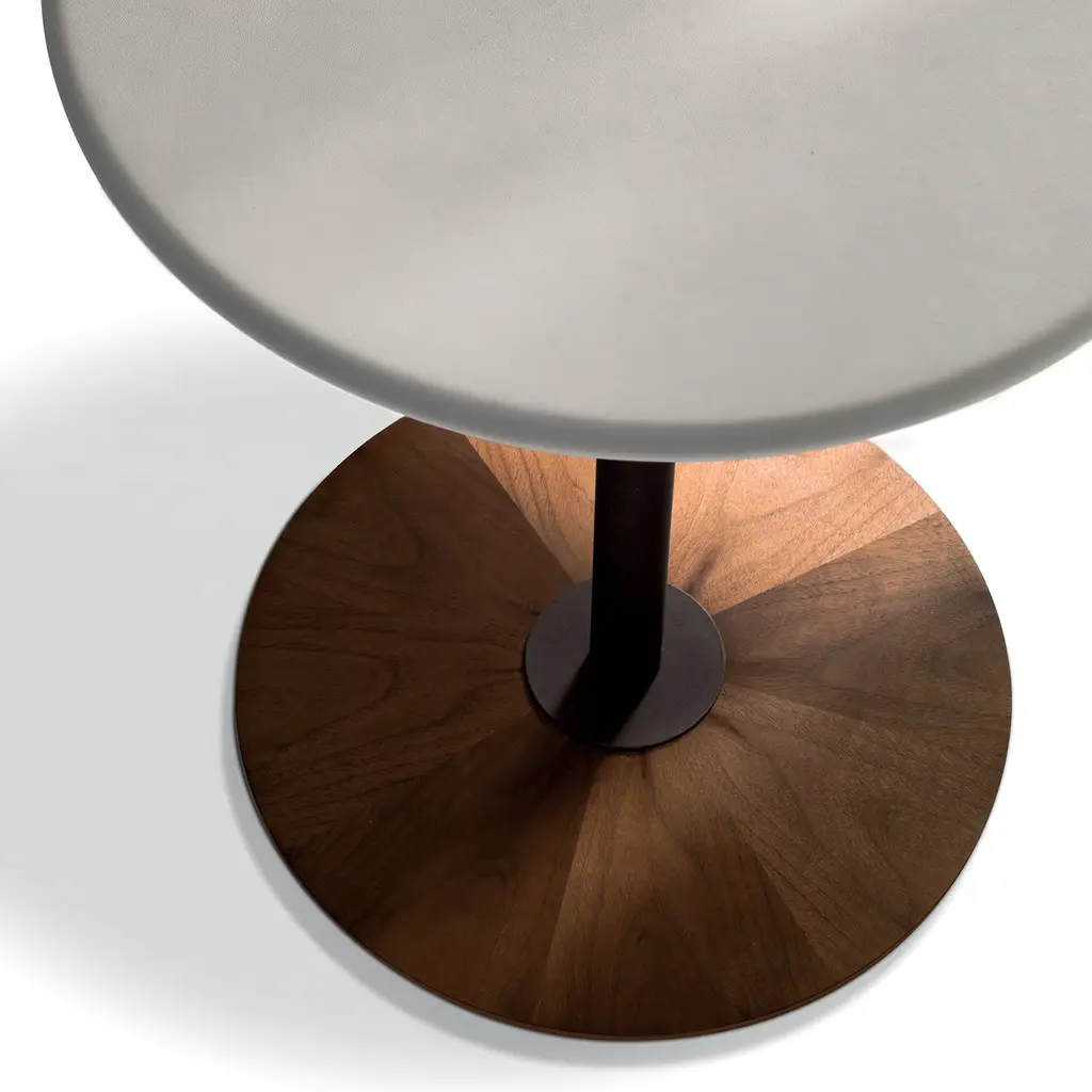 Sleek round lines define this minimalist side table, boasting a Canaletto walnut base with a sturdy, bronze-lacquered metal leg supporting a fiber wood panel as top, elegantly upholstered with first-rate leather. Please consult the Concierge for further information and available customization options.