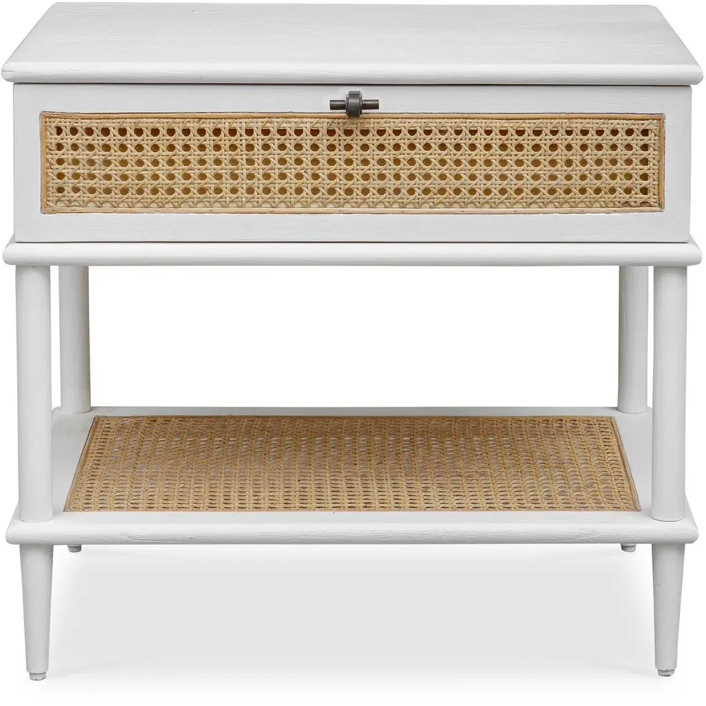 Embrace the timeless allure of mid-century design with our exquisite Magnus Side Table. This enchanting piece captures the essence of elegance with its harmonious blend of natural rattan cane accents and the rich texture of mindi wood. The table's design is a testament to refined craftsmanship, featuring a thoughtfully designed storage shelf that offers both functionality and style. The metal hardware adds a subtle touch of sophistication, perfectly complementing the table's overall aesthetic. Whether gracing your living room or enhancing your bedroom, the Magnus Side Table is a versatile addition that promises to infuse any space with a sense of warmth and charm. Let this captivating piece be the centerpiece of your home, inviting admiration and sparking conversations with its understated beauty.