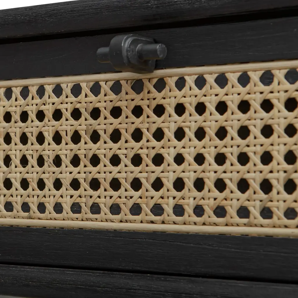 Embrace the timeless allure of mid-century design with our exquisite Magnus Side Table. This enchanting piece captures the essence of elegance with its harmonious blend of natural rattan cane accents and the rich texture of mindi wood. The table's design is a testament to refined craftsmanship, featuring a thoughtfully designed storage shelf that offers both functionality and style. The metal hardware adds a subtle touch of sophistication, perfectly complementing the table's overall aesthetic. Whether gracing your living room or enhancing your bedroom, the Magnus Side Table is a versatile addition that promises to infuse any space with a sense of warmth and charm. Let this captivating piece be the centerpiece of your home, inviting admiration and sparking conversations with its understated beauty.