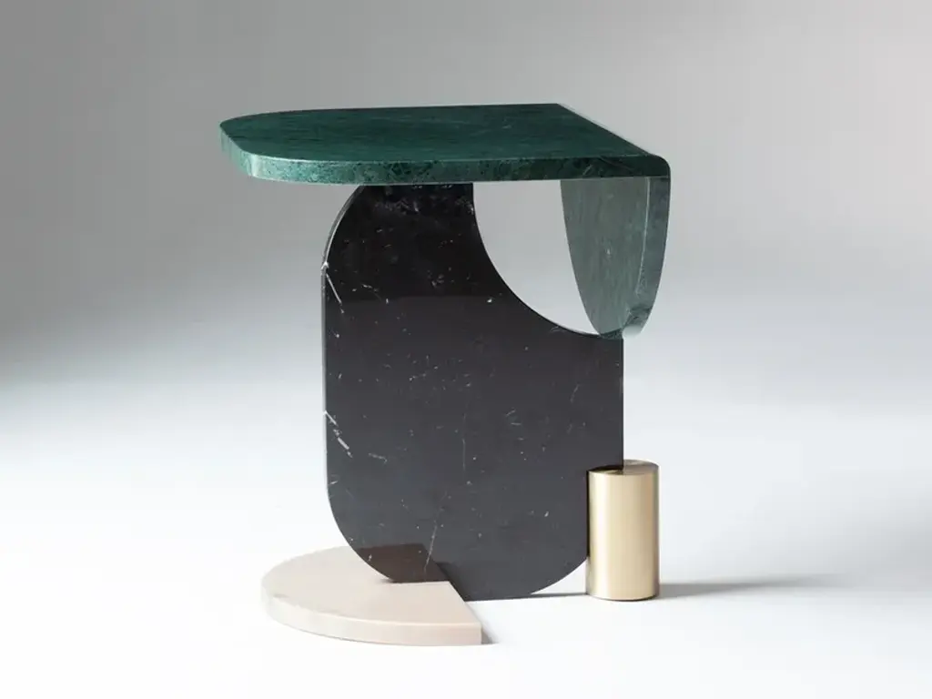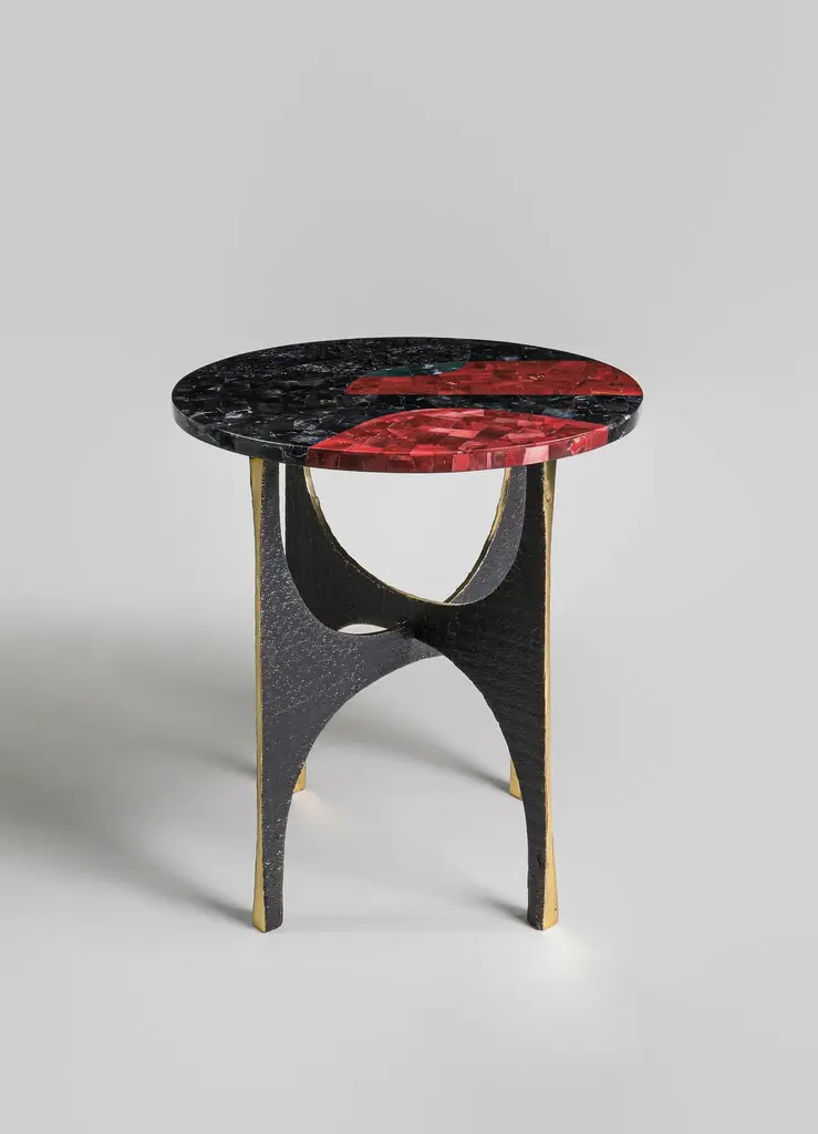 Maheshwar Side Table Medium In Semi Precious Overlay Top, Viya By Vikram Goyal