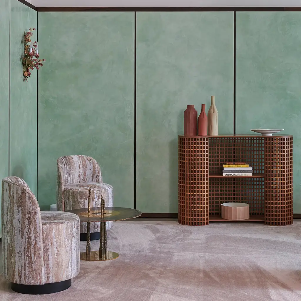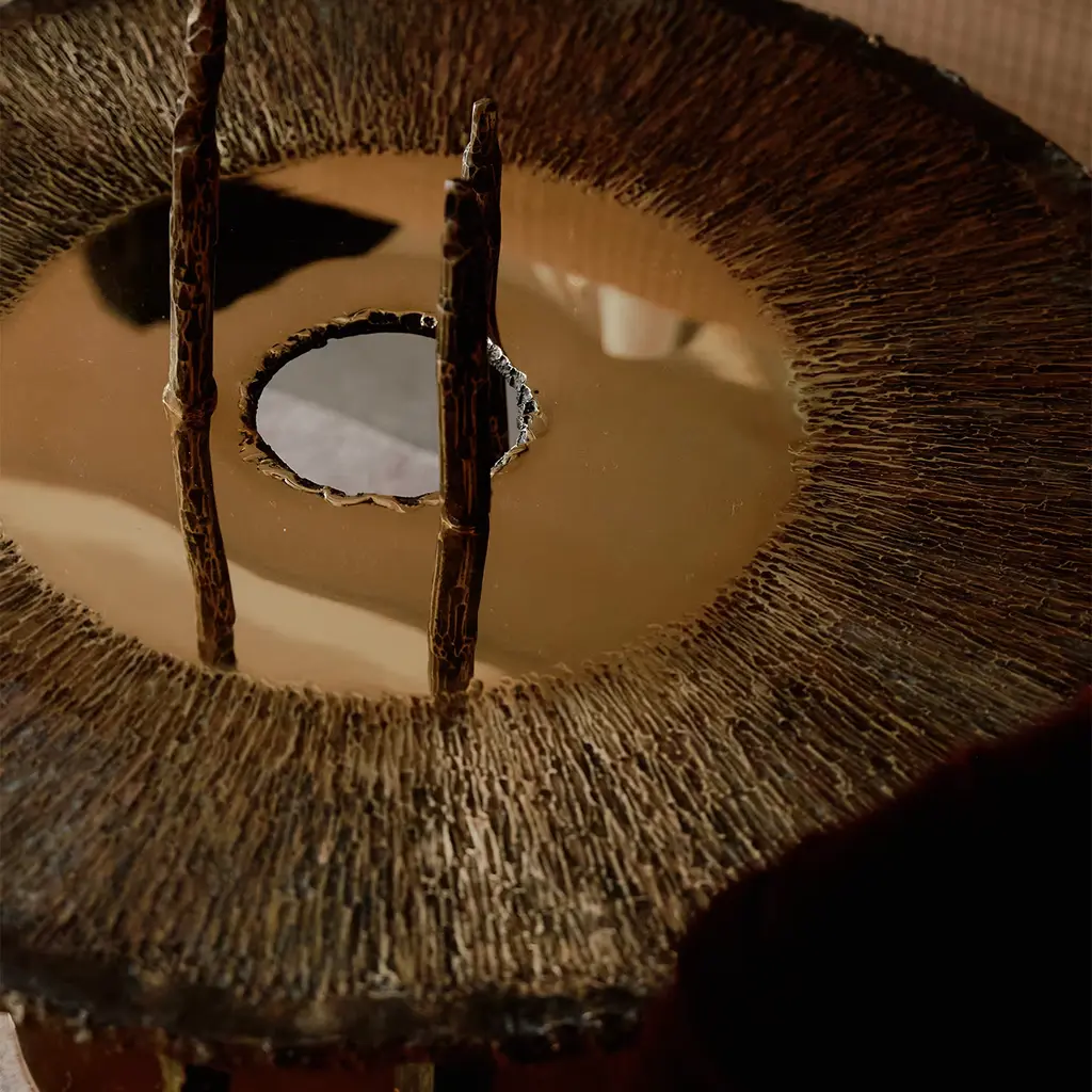 Between art and design, matter and aesthetic, this side table from the Alchemical Memories Collection is a testament to traditional craftsmanship. Forged and plated with brass by La Fucina di Efesto's master of art Alessandro Rametta, it features a sophisticated combination of shiny and raw finishes, enhancing its sculptural shape and the nature-inspired, timeless flair. This piece is currently on show and immediately available at Artemest Galleria New York.