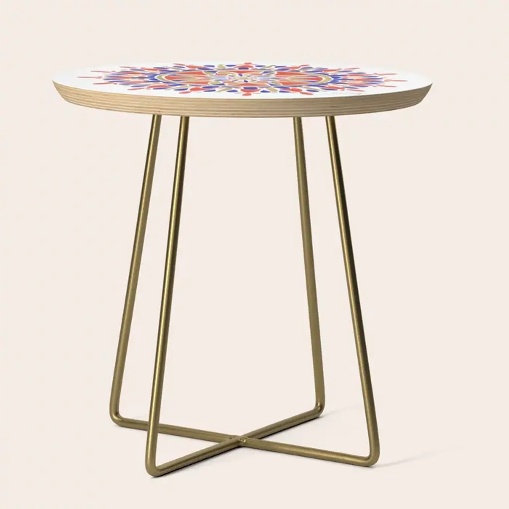 Mandala Tall Small Inlaid Erable & Metal Side Table