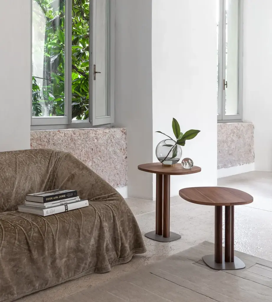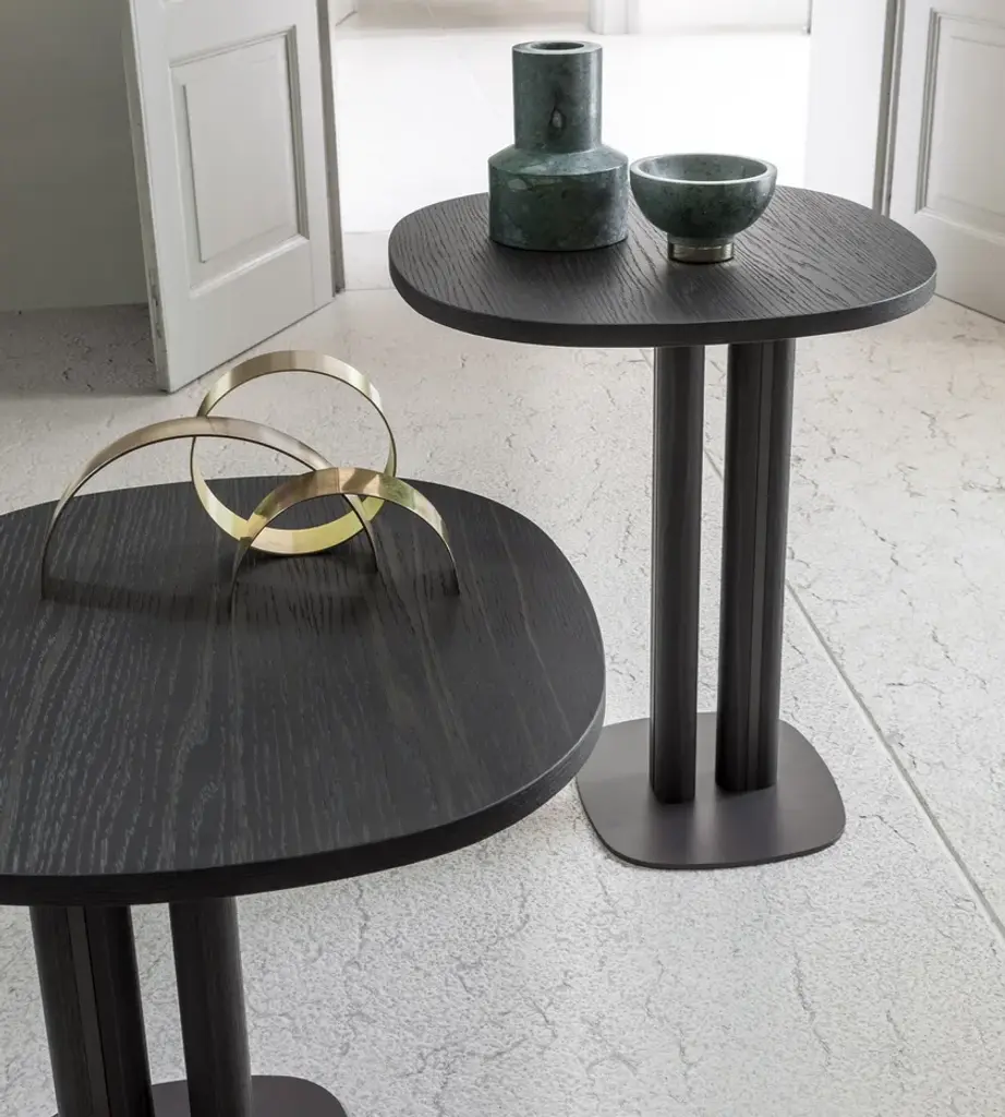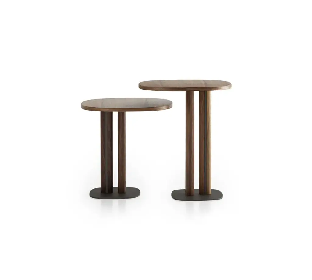 MANHATTAN is a sofa side table with epoxy powder-coated metal base, enclosed by two solid wood inserts. Top in shaped MDF with real wood veneer, thickness 19 mm.Epoxy powder-coated metal base in champagne or dark burnished finish, enclosed by two solid Canaletto walnut wood inserts. Top in MDF with shaped Laguna sessile oak or Canaletto walnut veneer, thickness 19 mm. Available finishes:cod. HM.MAN.DM.NC.MC: MDF walnut Canalettocode HM.MAN.DM.RL.MB: MDF Laguna oakThe Enjoy Collection is Morica Design’s most sparkling, dynamic collection. The items are lively, inspired by nature, and find their soul in the pastel shades that blend and play with the wood in an original, fresh manner. The distinctive feature of Enjoy Collection is the use of color, declined in functional furnishings and contemporary mood. Modern and refined products made with high quality materials and handcrafted in Italy.