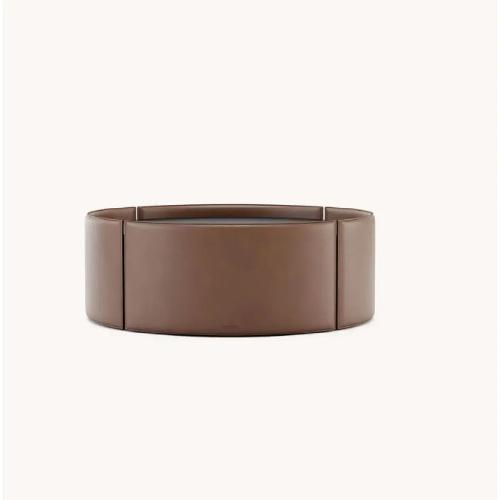 Mano center table by DomkapaDimensions: W 80 x D 80 x H 31 cm.Materials: Black lacquered matte, natural leather (Albany Terra).Also available in different materials.An outstanding piece with striking aesthetic balance and functionality, merging in a harmonious craftwork design. Its round structure is fully upholstered in natural leather while the top features a wooden board. The leather frame included four panels that come together to create a marvelous design and high-end production skills.Mano is available in the coffee table and side table version, for a distinctive, is eternal.Domkapa holds a tremendous passion for detailed stitching, presenting several similarities to the haute-couture philosophy focused on the value of a “made by hand”. Based in Portugal, Domkapa was founded in 2009 as a Private Label. The long and fruitful path, full of experience and achievements inspired the brand’s new identity and independence, in 2017.Domkapa challenges its team to create the perfect daily meeting between design and comfort in each piece of the brand’s collections. Our design team works side by side with the production, and this organic synergy allows the creation of innovative designs.