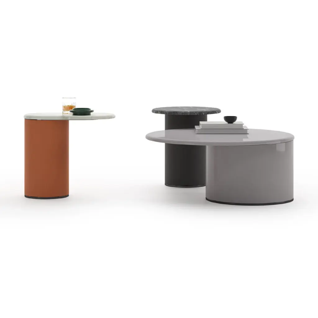 Introducing Elliot side table, a luxurious addition to any living space. Designed by Enrico Cesana and produced by Marac, this coffee table features exquisite curved plywood and elegant leather in Graphite, Tortora, and Caramel. The 2 mm thick marble top comes in Calacatta Oro or Grigio Orobico Arabescato. Available in multiple sizes for a perfect fit.