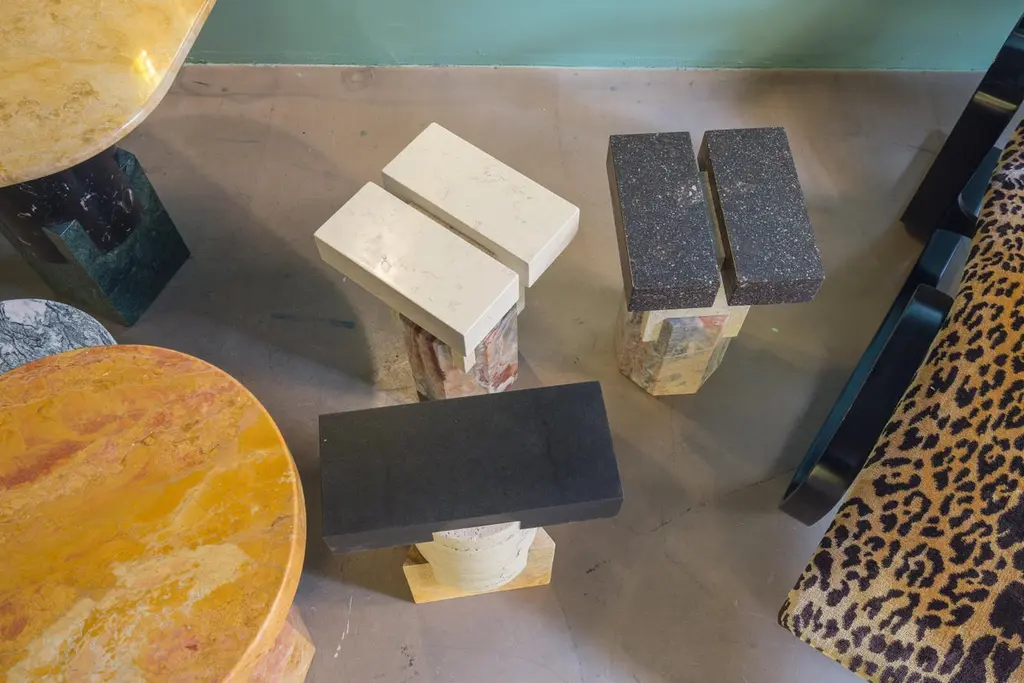 Marble ionik side table by OeufficeEdition: 12 + 2AP2015Materials: Giallo reale marbleDimensions: L 40 x W 40 x H 60 cmAvailable in nero marquina marble.Kapital is a series of limited edition tables and stools based on essential forms, reminiscent of primordial stone capitals and simple geometric assemblages commonly found in classical architecture. The distinct and characteristic profiles, proportions and details found in classical orders inspired these works as a simplified reinterpretation with a contemporary twist.Oeuffice was founded in 2011 as a collaboration between Nicolas Bellavance-Lecompte and Jakub Zak. After many years of a parallel life between Canada, Berlin and Milan, they united to form Oeuffice, a new research laboratory with a focus on developing innovative objects of limited edition. Their work reflects a common ideal of creating objects inspired by visions of a contemporary utopia and has been exhibited internationally with various galleries including Phillips de Pury in London, R20th in New York, Dimore Gallery in Milan and Carwan Gallery in Beirut..