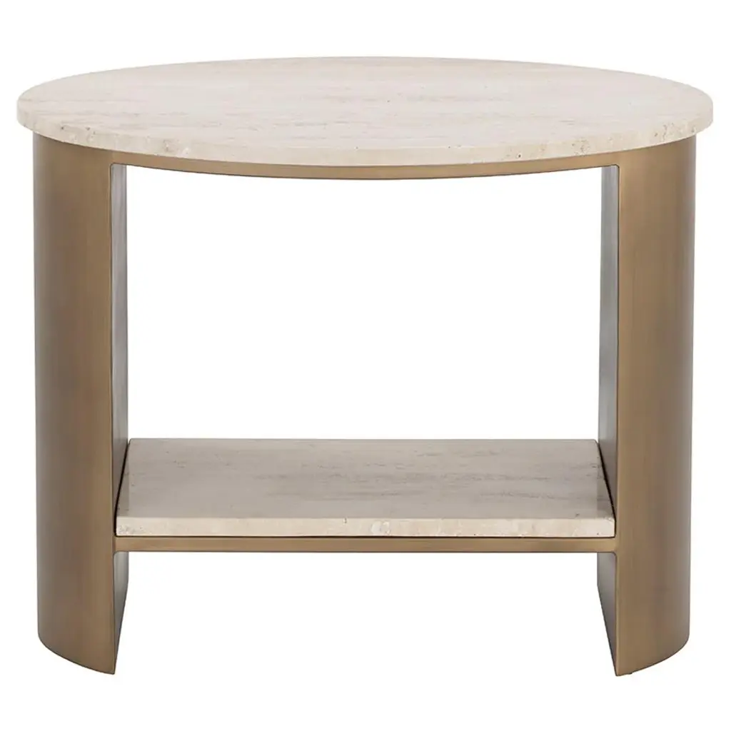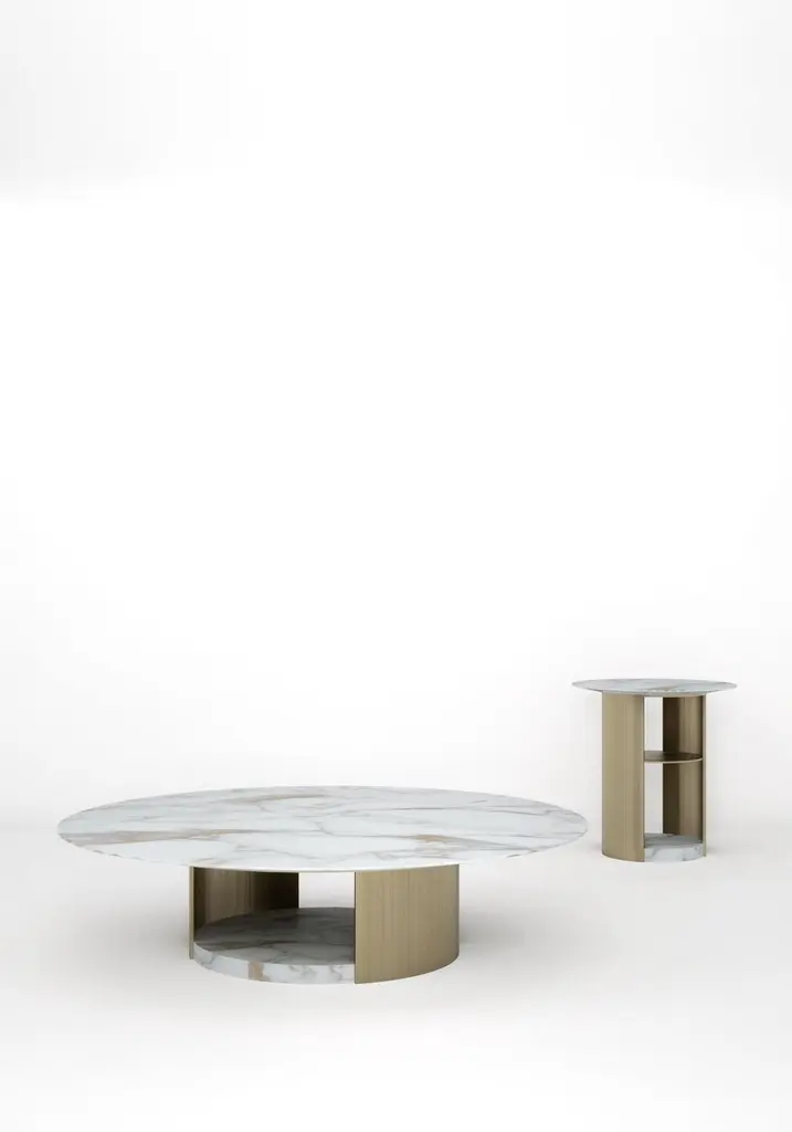 Marble "Milos" side table - Giorgio BonaguroDimensions: H 52 x D 50 cmMaterials: Calacatta oro marble, satin brassAvailable in other marbles and metal finishes.Collection of tables characterized by curved metal legs with a solid marble base and a marble top in the same finish. Its simple and elegant shapes are oriented to a refined luxury.Giorgio Bonaguro studied mechanical engineering in Modena and then graduated at Scuola Politecnica di Design in Milan, in the double Master of Industrial and Interior Design. He has worked in several design studios in Milan, first at Lorenzo Palmeri's, then with Francesco Faccin, at Michele De Lucchi's Studio. And then with the designer and critic MarCo Romanelli. He collaborates with several companies and develops limited editions presented at some international fairs such as Salone del Mobile, Design Miami, London Design Festival, Maison et Objet, Design Days Dubay, ecc. He works between Italy and Brazil in the field of product design, interior design, exhibition and lighting, trying to combine a linear style with research and contamination between materials.