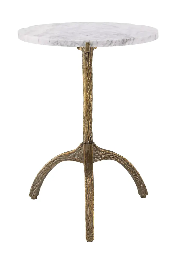 The side table Cortina by Eichholtz reflects an artistic and elegant personality. Featuring a round white marble tabletop and a pedestal with tripod base, this furniture is truly a piece of art. Its vintage brass stem has a texture reminiscent of a tree branch making it feel warm and unique.