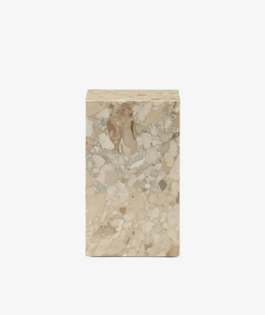 As versatile as it is timeless, the marble Plinth serves the dual purpose of being a beautiful, sculptural piece on its own and highlighting whatever objects rest upon it. The honed marble carries an air of sophistication and elegance to elevate any space. Designed by Norm Architects as a tribute to the particular beauty of marble, the Plinth comes in cubic, tall, and low varieties, as well as a small range of colors including the new brown grey. The heaviness of the Plinth marble stands in contrast to the honed surface; light bounces off of the angles and falls across the tops, producing a spotlight-effect in any space. Though the lines of the podiums are sharp and clean, the naturalness of the marble is at the forefront of its visual identity, creating an intriguing contrast within each piece. From a side table in a private home to a place to display a vase of flowers in a restaurant, Plinth podiums provide an unparalleled surface. *Please note: this item is shipped in a wooden crate. If you would like crate to be opened upon delivery, choose White Glove Delivery with Assembly at checkout.
