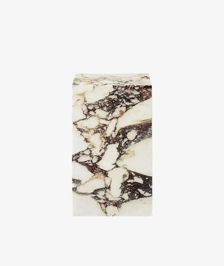 As versatile as it is timeless, the marble Plinth serves the dual purpose of being a beautiful, sculptural piece on its own and highlighting whatever objects rest upon it. The honed marble carries an air of sophistication and elegance to elevate any space. Designed by Norm Architects as a tribute to the particular beauty of marble, the Plinth comes in cubic, tall, and low varieties, as well as a small range of colors including the new brown grey. The heaviness of the Plinth marble stands in contrast to the honed surface; light bounces off of the angles and falls across the tops, producing a spotlight-effect in any space. Though the lines of the podiums are sharp and clean, the naturalness of the marble is at the forefront of its visual identity, creating an intriguing contrast within each piece. From a side table in a private home to a place to display a vase of flowers in a restaurant, Plinth podiums provide an unparalleled surface. *Please note: this item is shipped in a wooden crate. If you would like crate to be opened upon delivery, choose White Glove Delivery with Assembly at checkout.