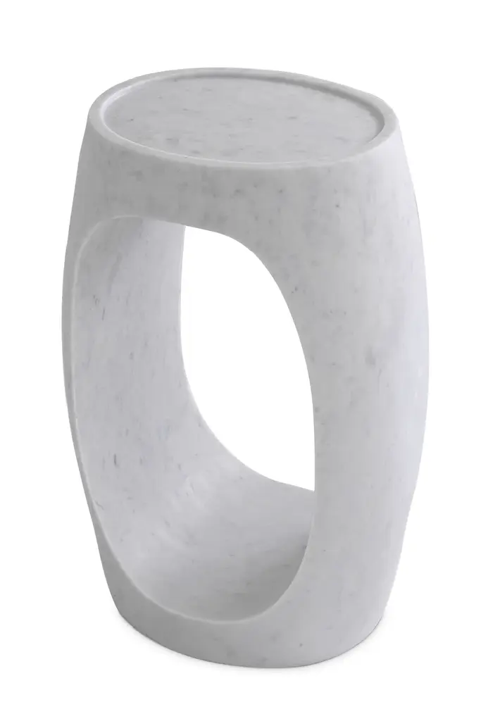 In need of a little extra storage space with an elegant look? Exuding Mid-Century Modern style, the high Clipper Side Table offers generous storage space underneath its round top with raised edge. It is entirely crafted from one solid piece of white marble and black marble, which makes each piece unique. The honed finish gives the stone a beautiful matte look and velvet-like touch. Combine with the low Clipper Side Table for a great plant nook.