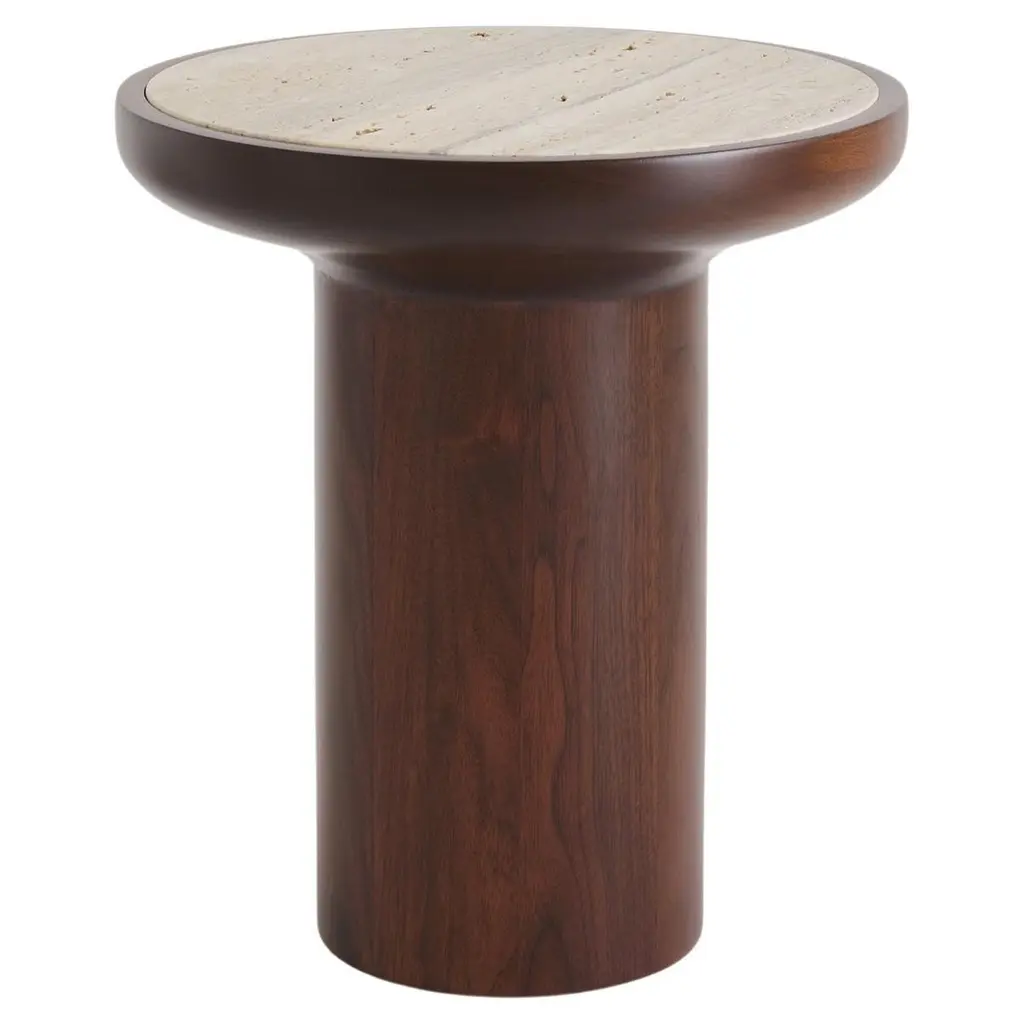 Featuring a rich walnut veneer base elegantly contrasted by a shimmering Bianco Lilac marble top, this piece delivers a timeless elegance. Its seamless blend of natural textures and refined design transforms any space into a sanctuary of high-end style.