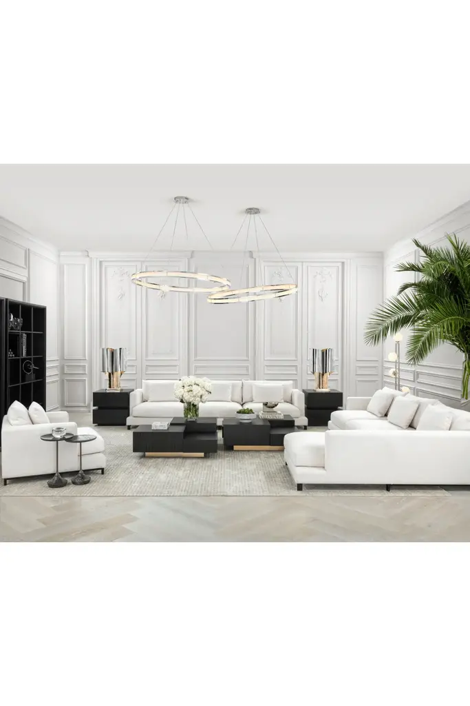 Elevate your living space and enjoy unrivalled design with the exclusive Eichholtz 2-piece Puglia Side Tables. It features wooden tops, brushed brass legs, and an exclusive onyx base. The Onyx used here is a natural metamorphic rock. It exhibits two unique colours intertwined – the warm honey colour formed by oxidised iron and has an artistic quality to the pattern, revealing thousands of years of deposits. You can display the two tables separately or nestle them together for a sophisticated, space-saving solution for your home. They make a striking partner for a sofa or armchair, the perfect resting place for drinks.