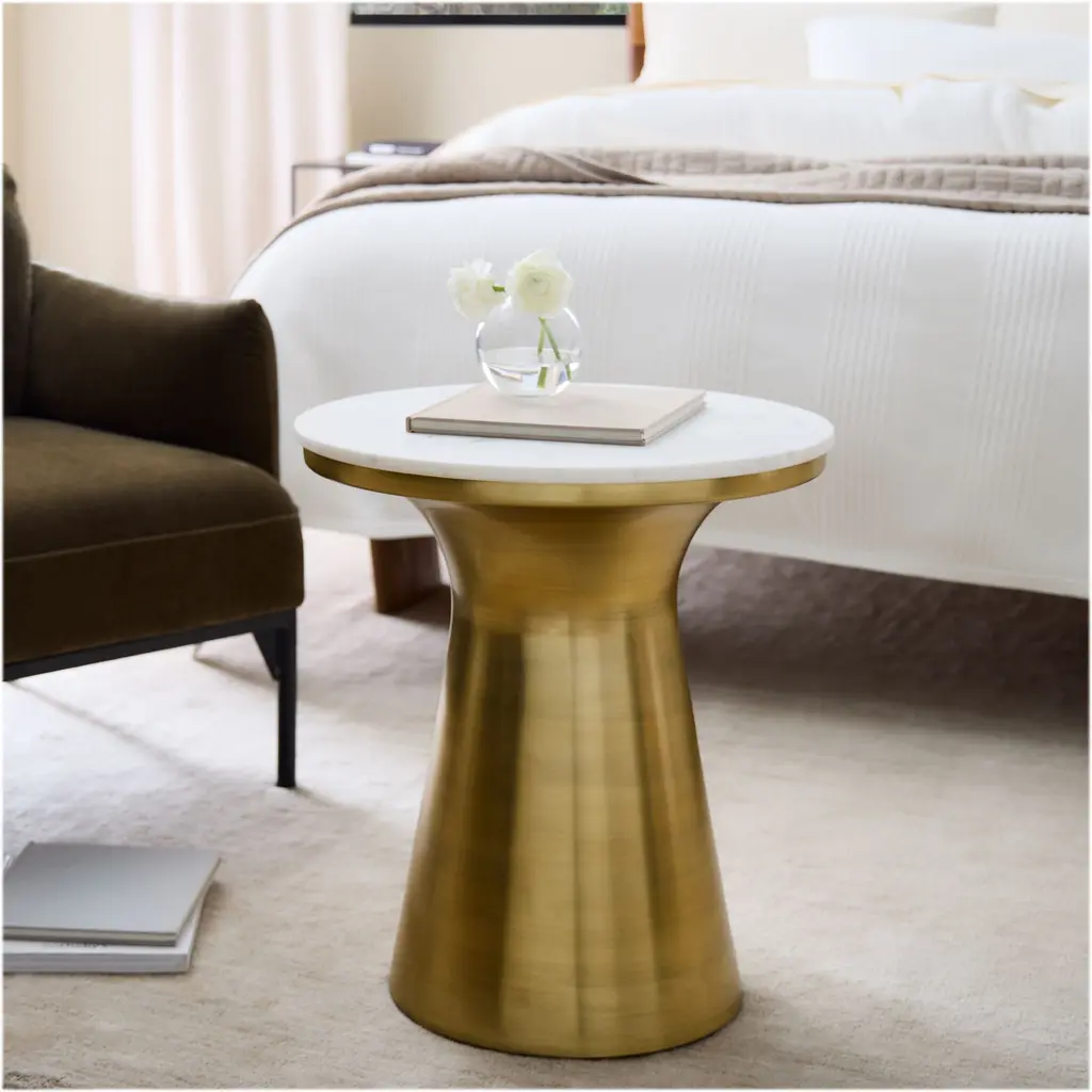 The modern mix of luxe marble & spun metal. Its shapely pedestal base catches the eye. Contract Grade, so you know it's built to last.
