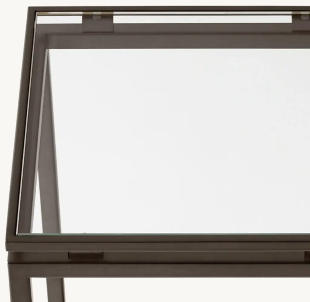 From Dutch furniture designers the Van Thiels, Marceau projects an understated elegance, its airy form made up of slender lines and clear glass planes. Finely crafted of stainless steel with a brushed finish, it features seamless joinery and a raised glass tabletop that appears to float above the frame. SHOP THE ENTIRE COLLECTION
